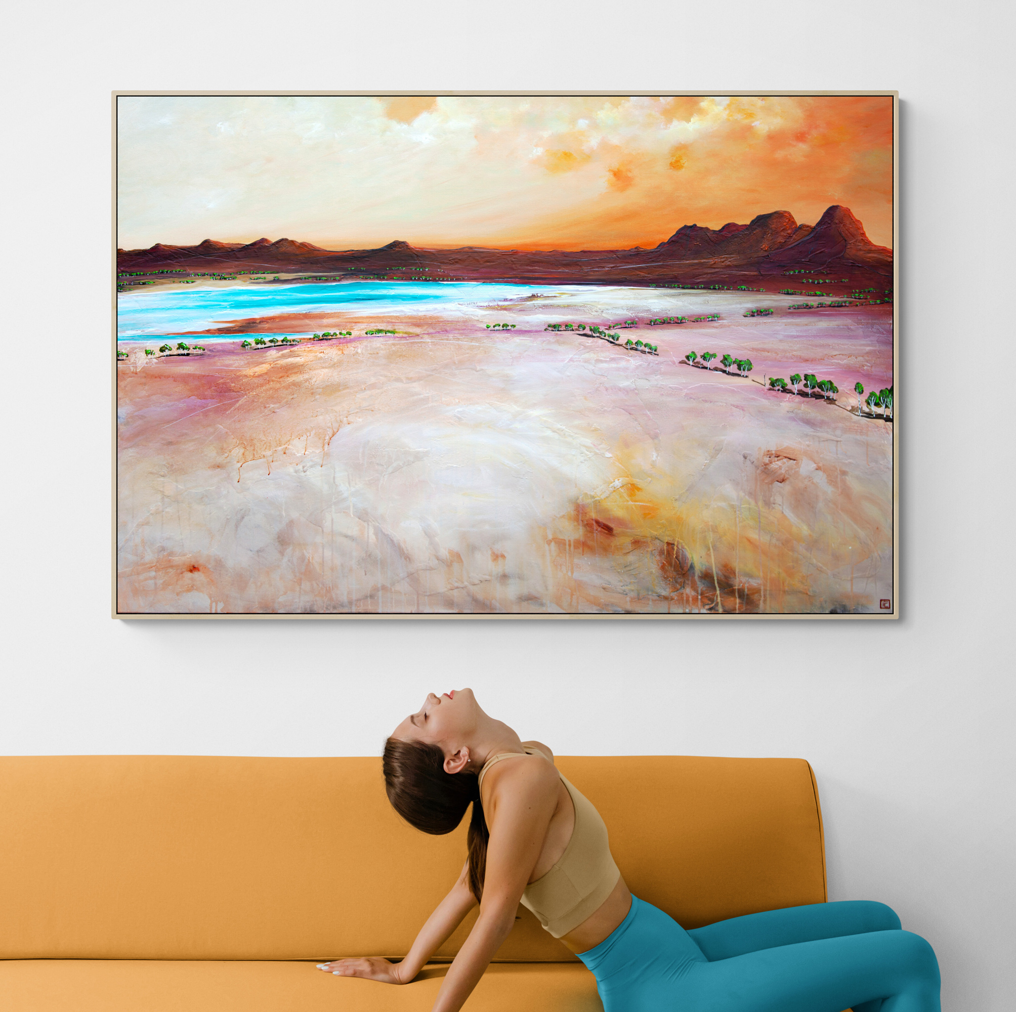 Sunset At The Cove Of Hope by Tania Chanter  is inspired by the rich and vibrant tones of an Australian landscape and the changes of light and mood throughout the day. Tania’s hope is that this painting brings a sense of calm to the room where it lives, and that is makes the people who enter the room feel as though a part of nature is right there with them.