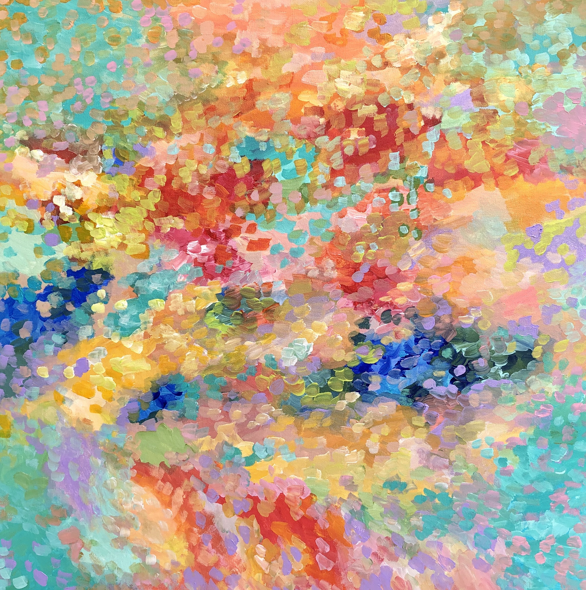 Sunset Beauty by Theo Papathomas – A very soothing and tranquil painting where sky, clouds, water and petals come together to create this beautiful landscape. Capturing the beautiful Pink pastel colours of the petals falling from the sky onto the landscape . A very harmonious and tranquil composition that can be enjoyed many years to come. The painting is signed and dated 2020 at the back and comes with a certificate of Authenticity.
