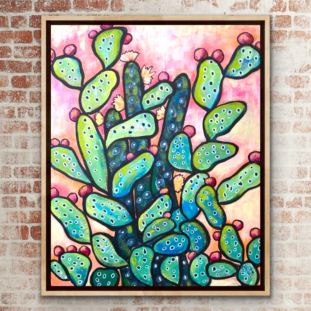 I love creating prickly pear cactus artworks and I have sold many over the last couple of years. This is the latest in my “Cactus Calling” series.