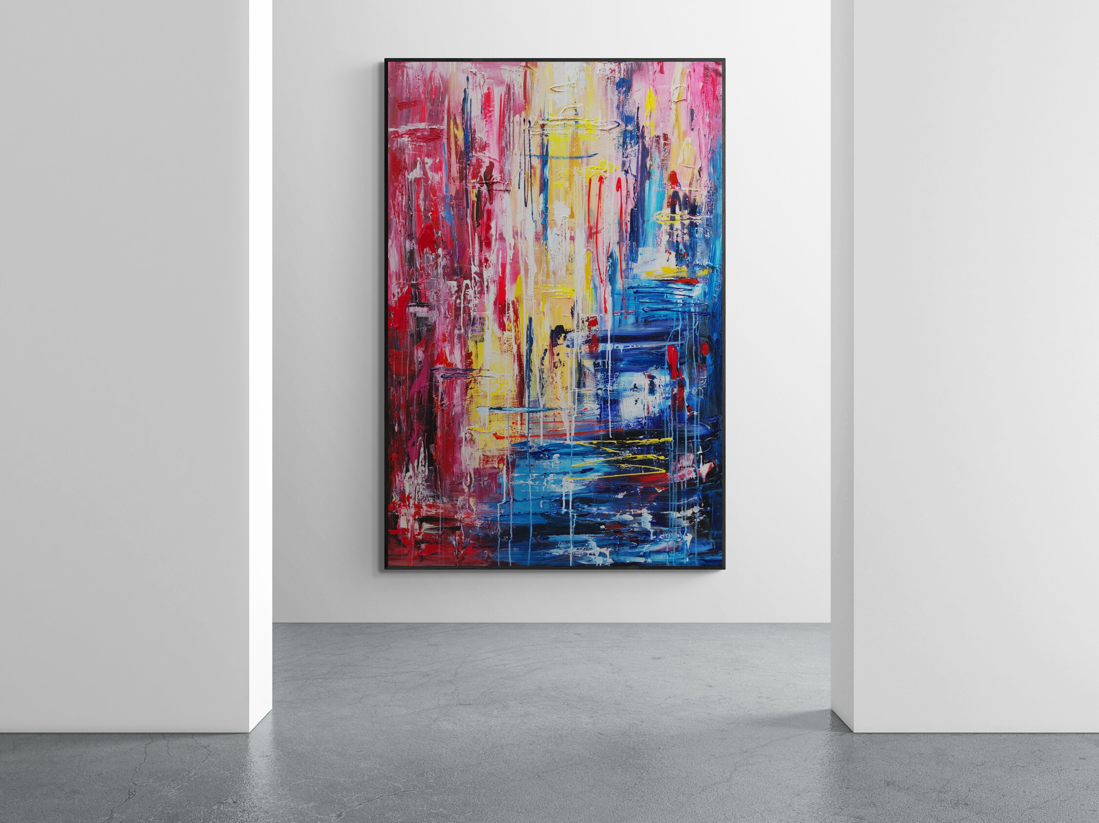 This beautiful modern piece is made with lots of layers of texture and drips of acrylic paint.