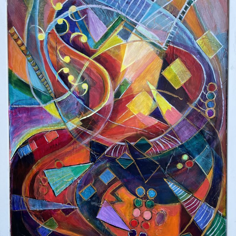 This is an original acrylic painting on stretched canvas, custom framed with a  clear varnished pine, floating frame.
