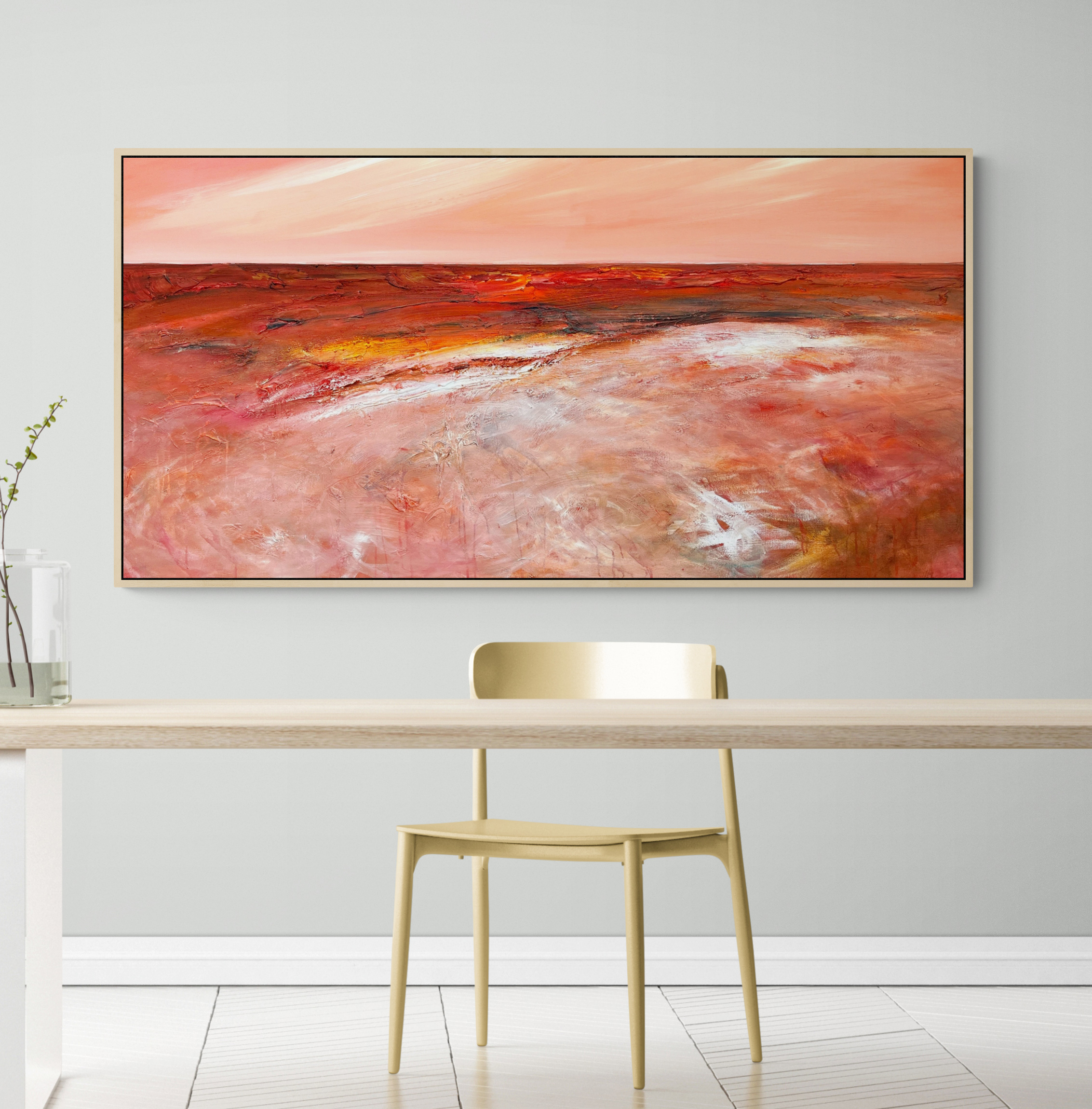 Sunset Of Promise by Tania Chanter is inspired by the rich and vibrant tones of an Australian seascape and the changes of light and mood throughout the day. Tania’s hope is that this painting brings a sense of calm to the room where it lives, and that is makes the people who enter the room feel as though a part of nature is right there with them.