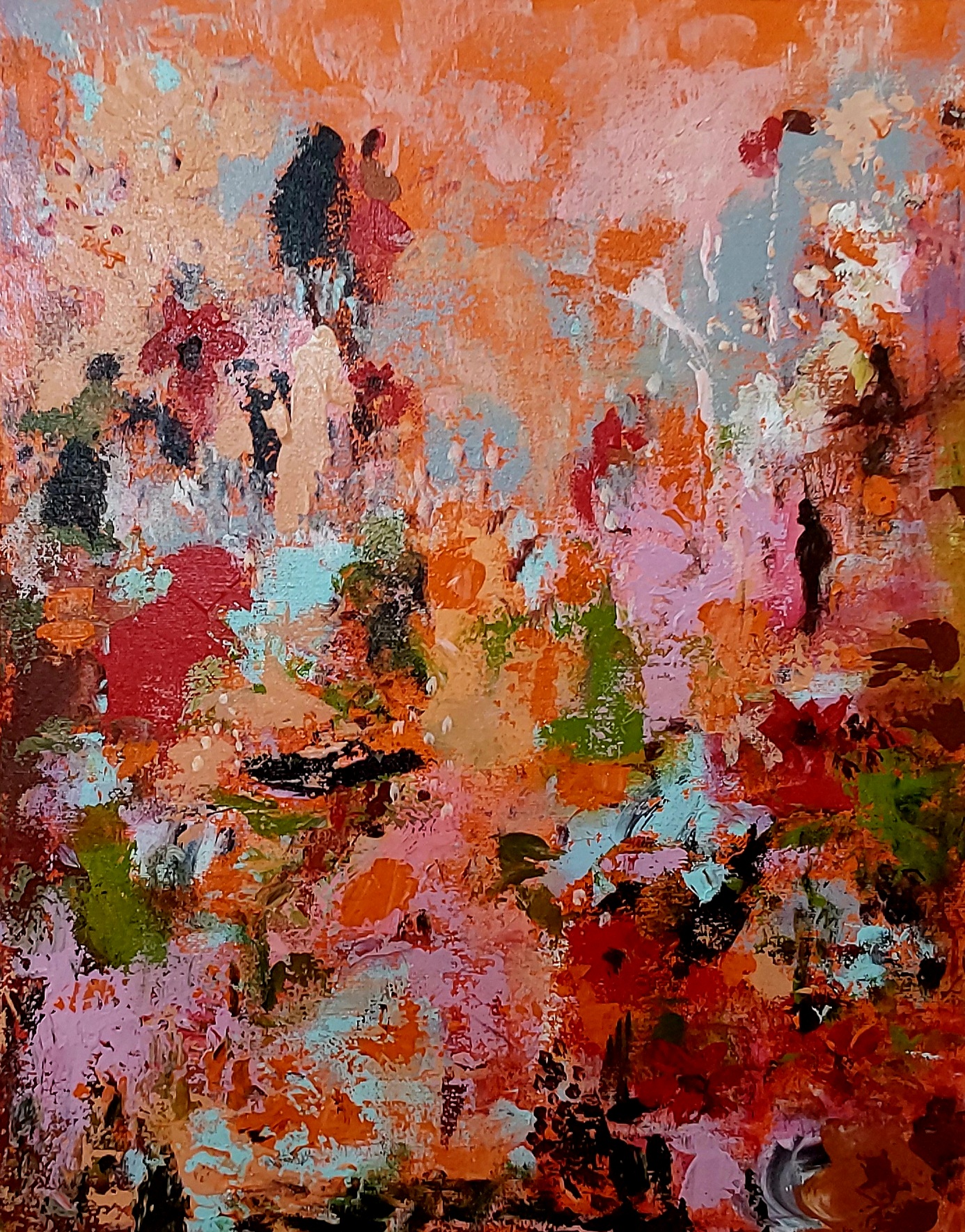 This original acrylic piece is bright and happy and will bring a sense of warmth to any decor.