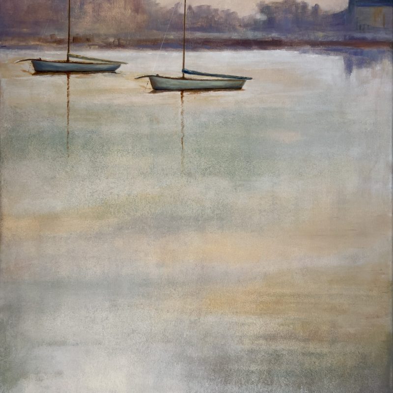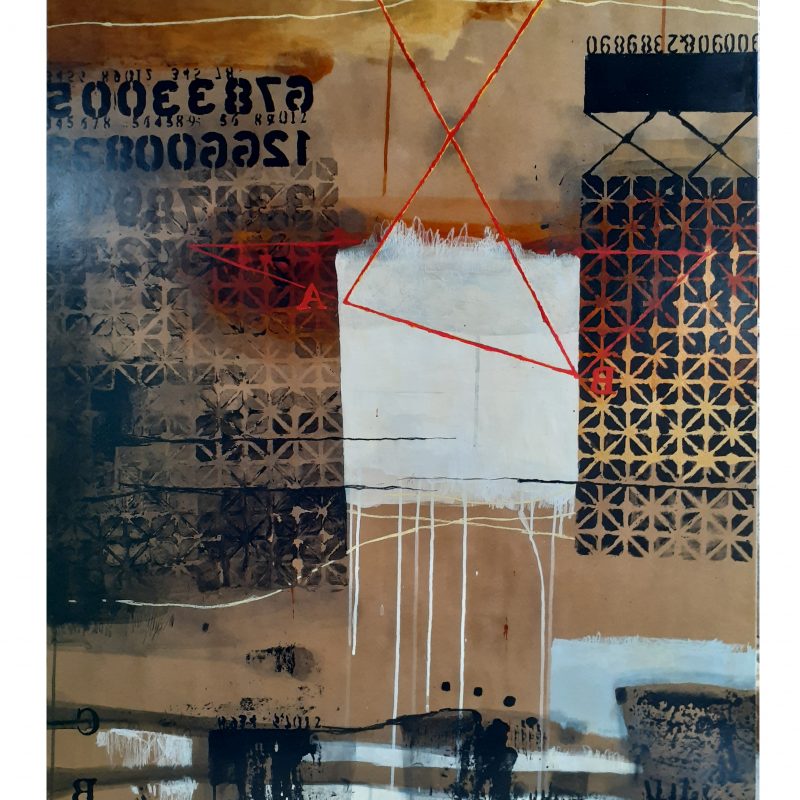 Acrylic on stretched canvas and encased in a timber floating frame.