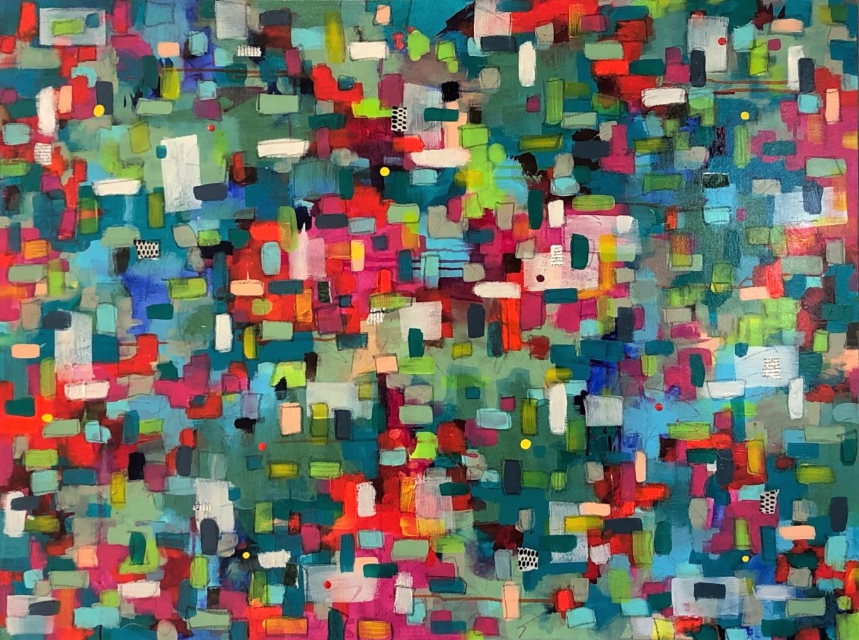 Acrylic and Mixed Media on canvas with a protective gloss varnish. Wide edge, acid-free, 340gsm cotton duck canvas, painted black on the side, wired and ready to hang. Please contact me if you would like the edges of the painting to be finished in a different colour.