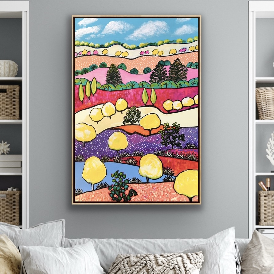 Professional quality acrylics and varnishes on a professional quality stretched canvas……framed in Australian Oak.