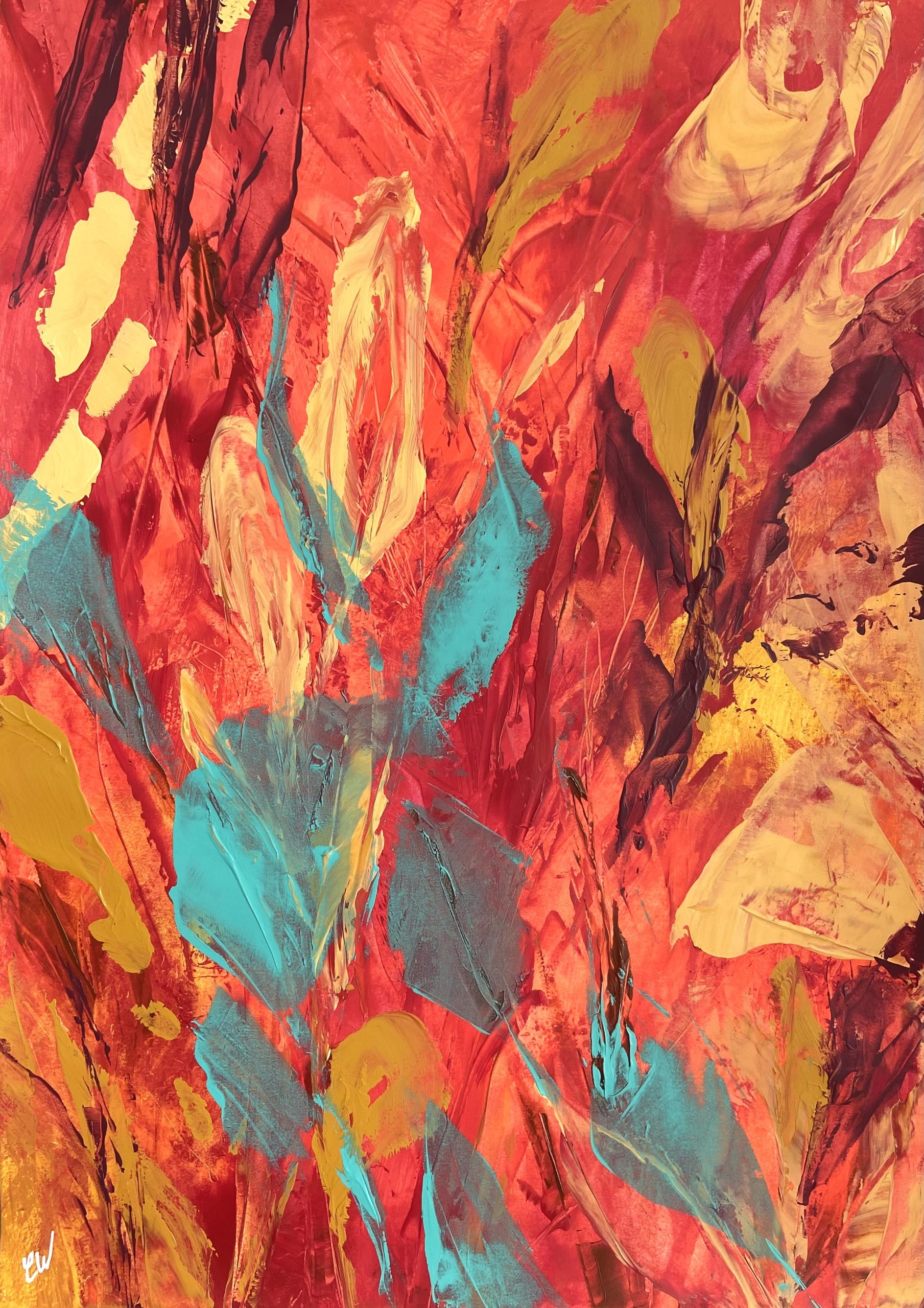 A beautiful abstract botanical painting. 59.4 x 42 cm (A2 size). Acrylic on paper. Frame not included. Requires framing.