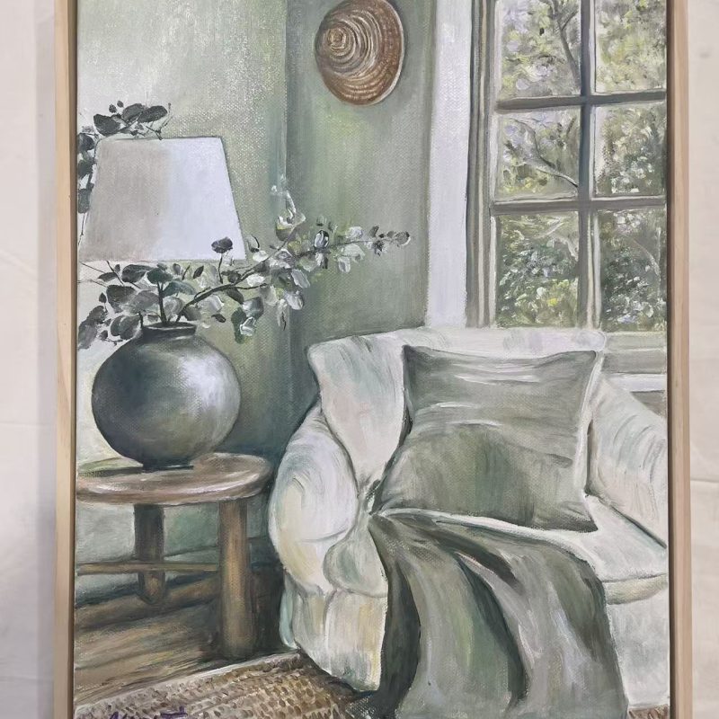 – Unframed. The painting wraps around the sides so a frame is optional.