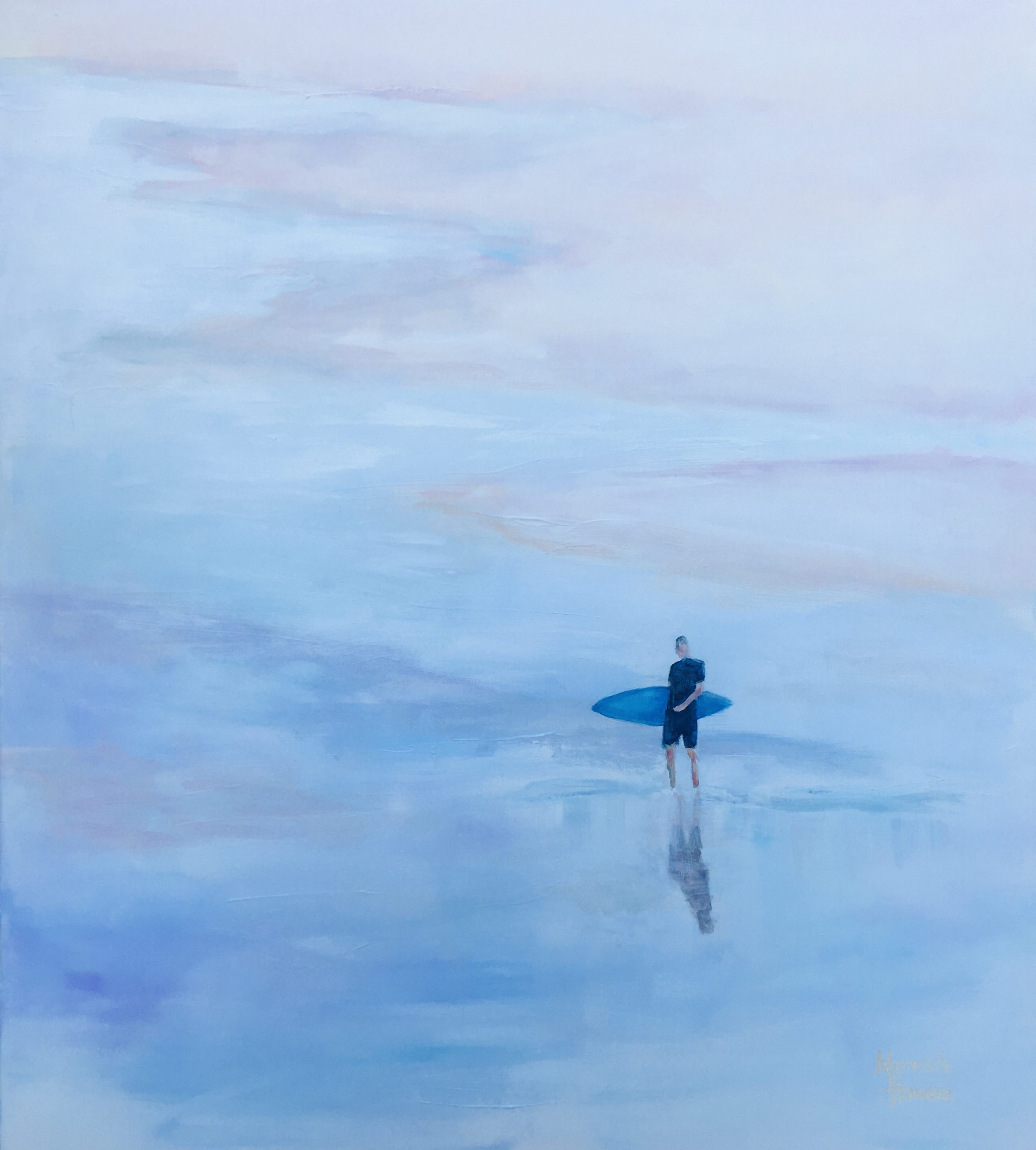 Surfer by Meredith Howse – A lone surfer in the cool coloured shallows ready for an early morning surf.