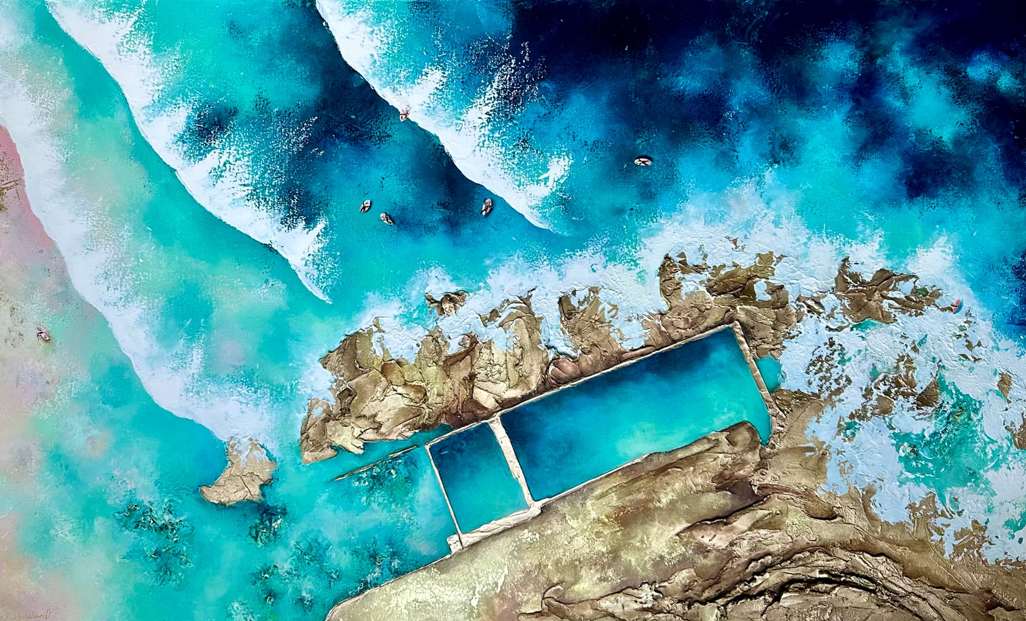 Some of my canvases are ordered with a float frame, usually the most popular is a Tasmanian oak frame. If you prefer to frame the piece once the painting is finished, I can assist you in organising a custom frame or you can choose to arrange framing yourself.