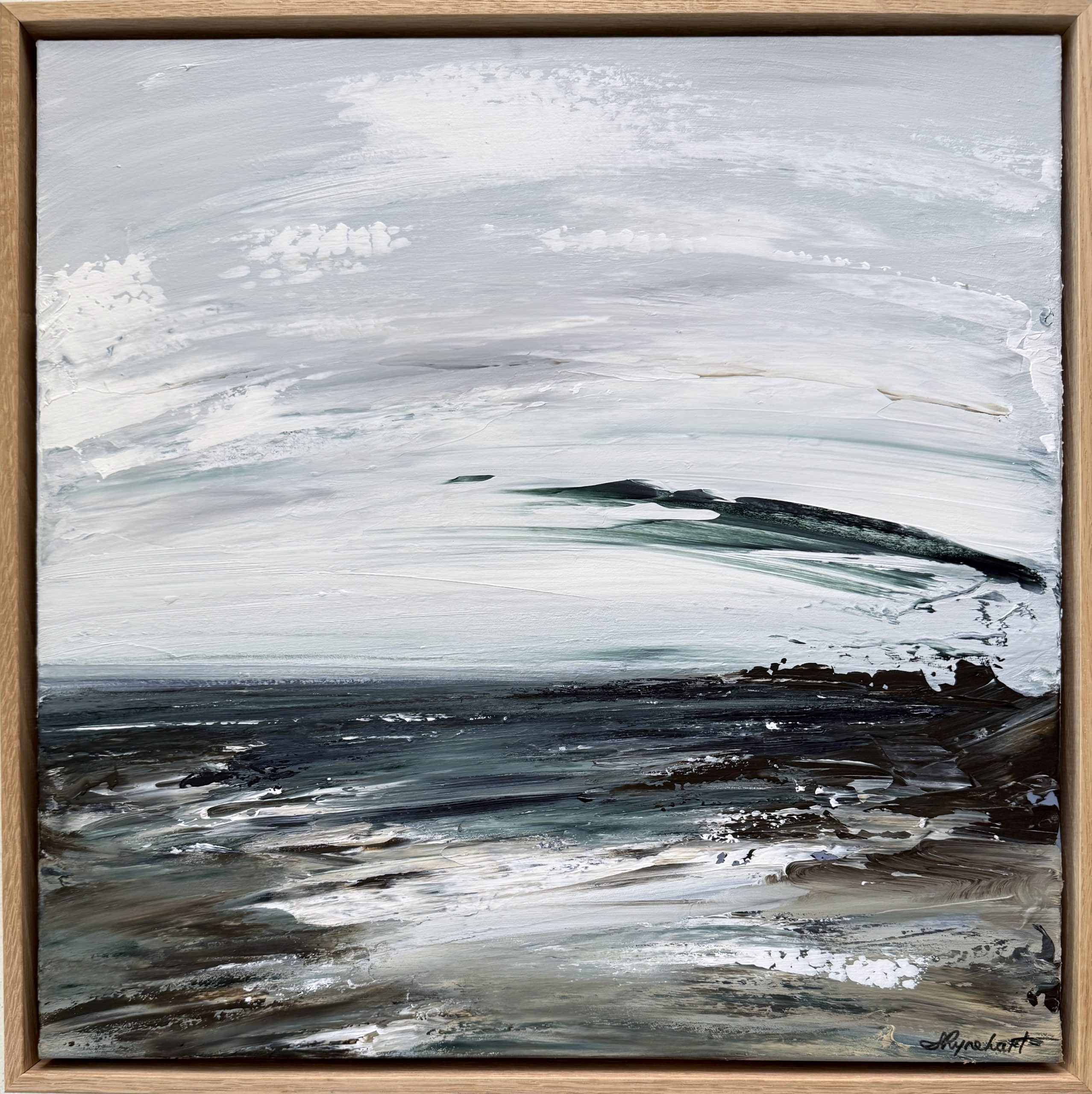Created with palette knives on 360 gsm stretched polycotton canvas, this emotive and dramatic beachscape is framed in a solid oak timber frame and comes satin varnished. It will also come with a COA with the above artist statement handwritten on the back.