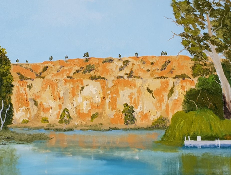 This is a painting of the Cliffs along the Murray River. at Swan Reach S.A. I lived there for some time working on a fruit block. I love the river and love painting it. great for holidays and fishing and boating. many people go to the river for holidays. the Cliffs are amazing in the morning and evening with the changes in color. Signed with a certificate of authenticity.