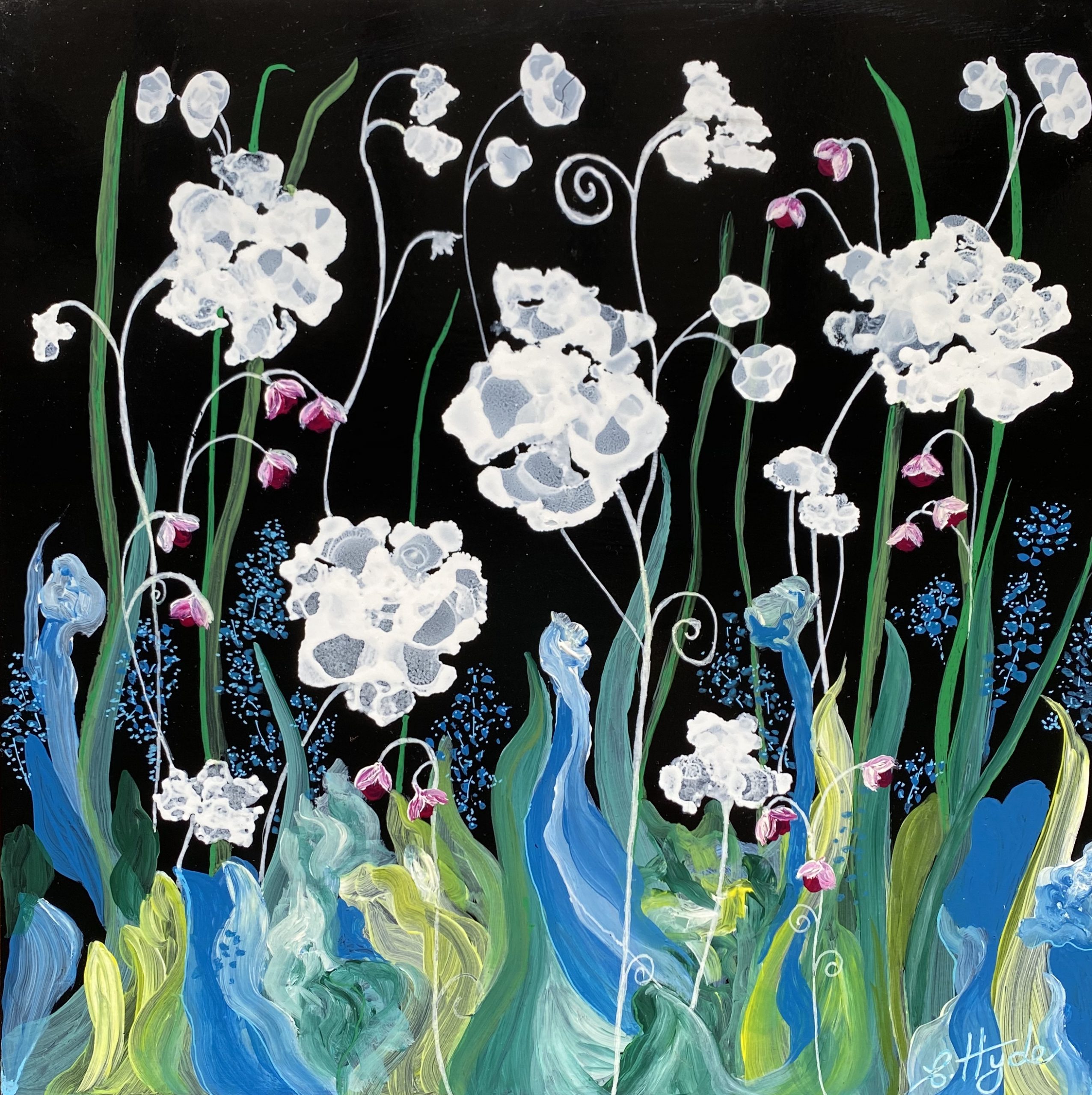 SWAY WITH ME has been hand-painted in artist quality acrylic flow paints onto a brushed black background. All sides of the painting are painted black to provide a polished smart finish.The painting surface is heavy paper, bonded onto sturdy board. The finished art piece has been protected with layers of Golden art varnish with UV protective qualities. The painting does not require a frame and has been mounted onto unseen stretcher bars with canvas backing. The rear of the painting has been affixed with gallery D-rings and cord, ready for you to adorn your wall. The painting is signed on the front and will come with an Artist Certificate of Authenticity.
