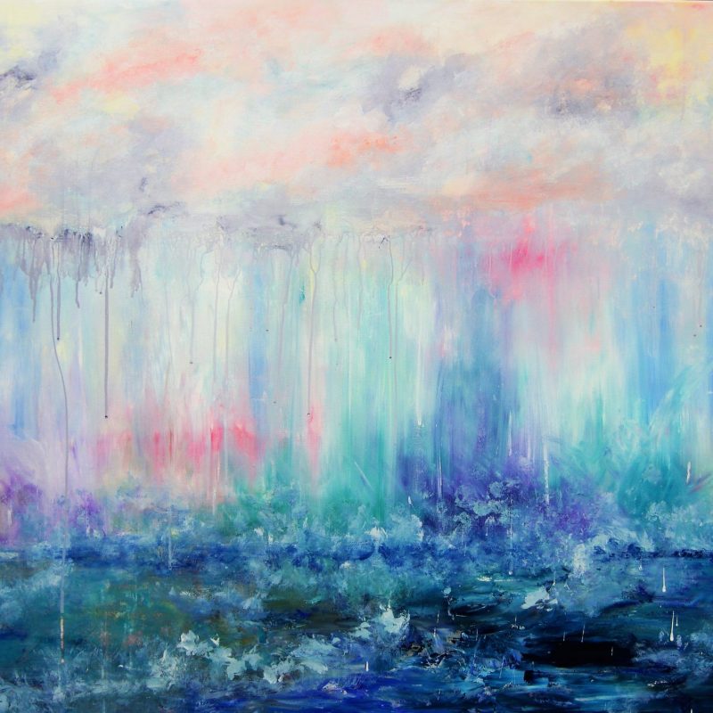 Richard uses the flow (paint pouring) technique for his artworks. The process predominantly has no control where the paint flows as its tilted across the canvas and according to Richard is lots of fun but messy work. He uses Acrylic paint mixed with flotrol and silicone.