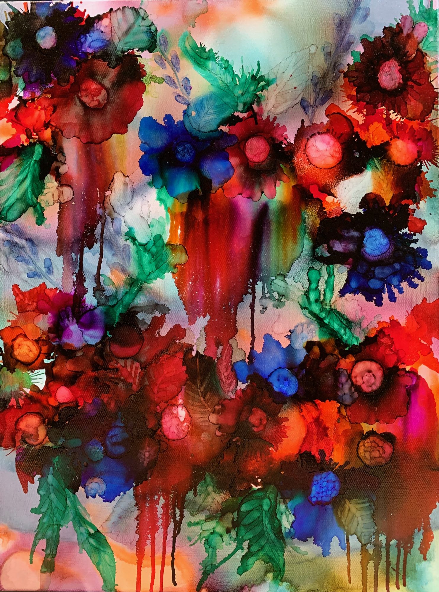 Alcohol ink on canvas, sealed with high grade varnish and UV spray.