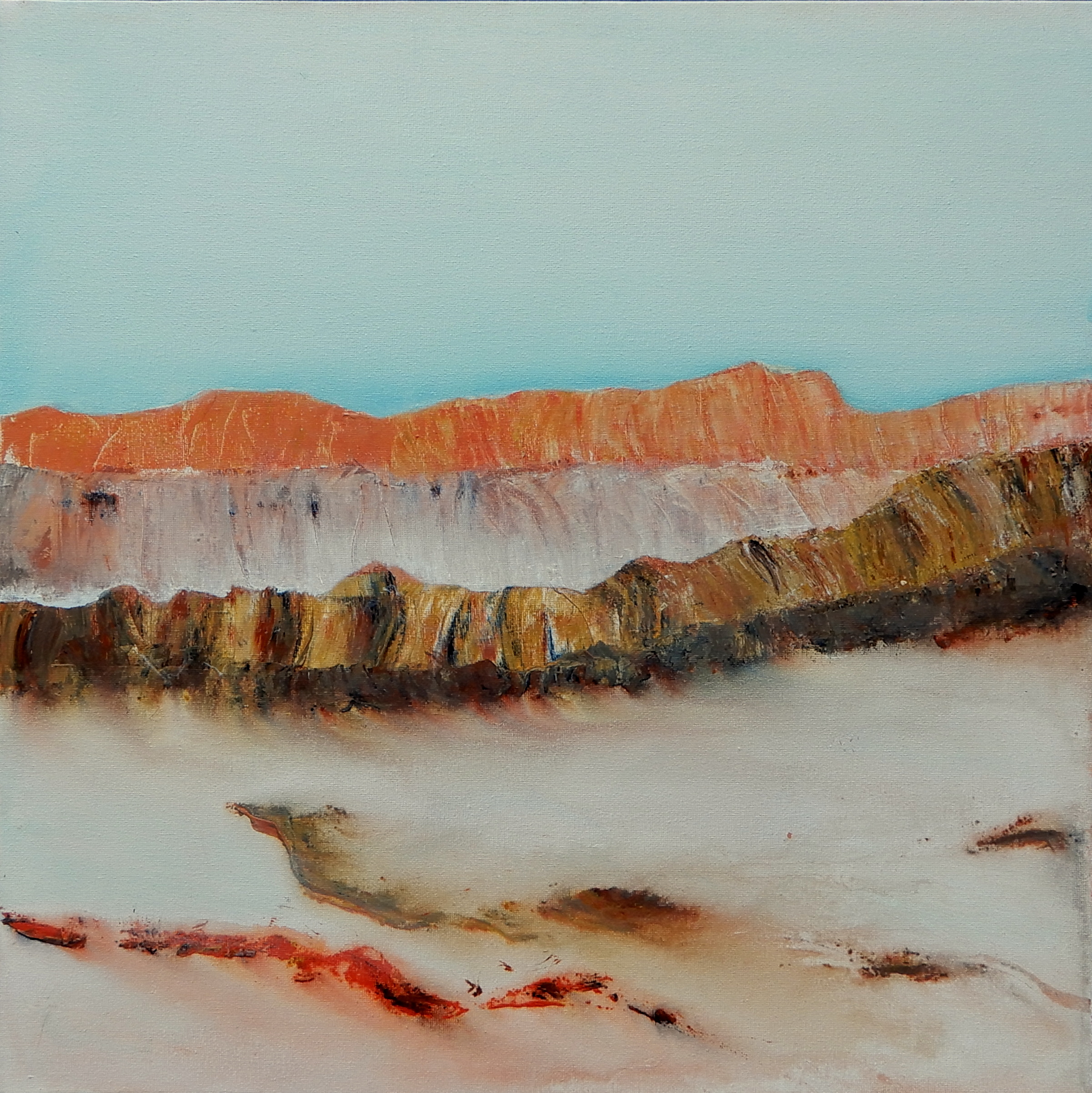 Rocky escarpments weather and turn to sand, swept along by wind over time in the vast spaces of Australia.