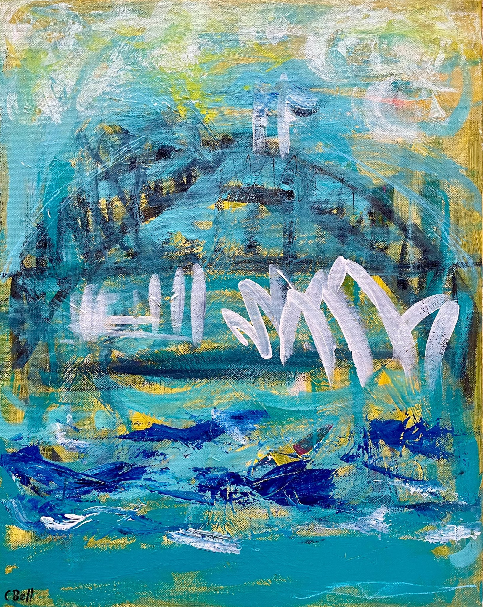 Original Painting ‘Sydney Harbour Alive’ by Cecilia Bell. A loose interpretation of the iconic Sydney Harbour.