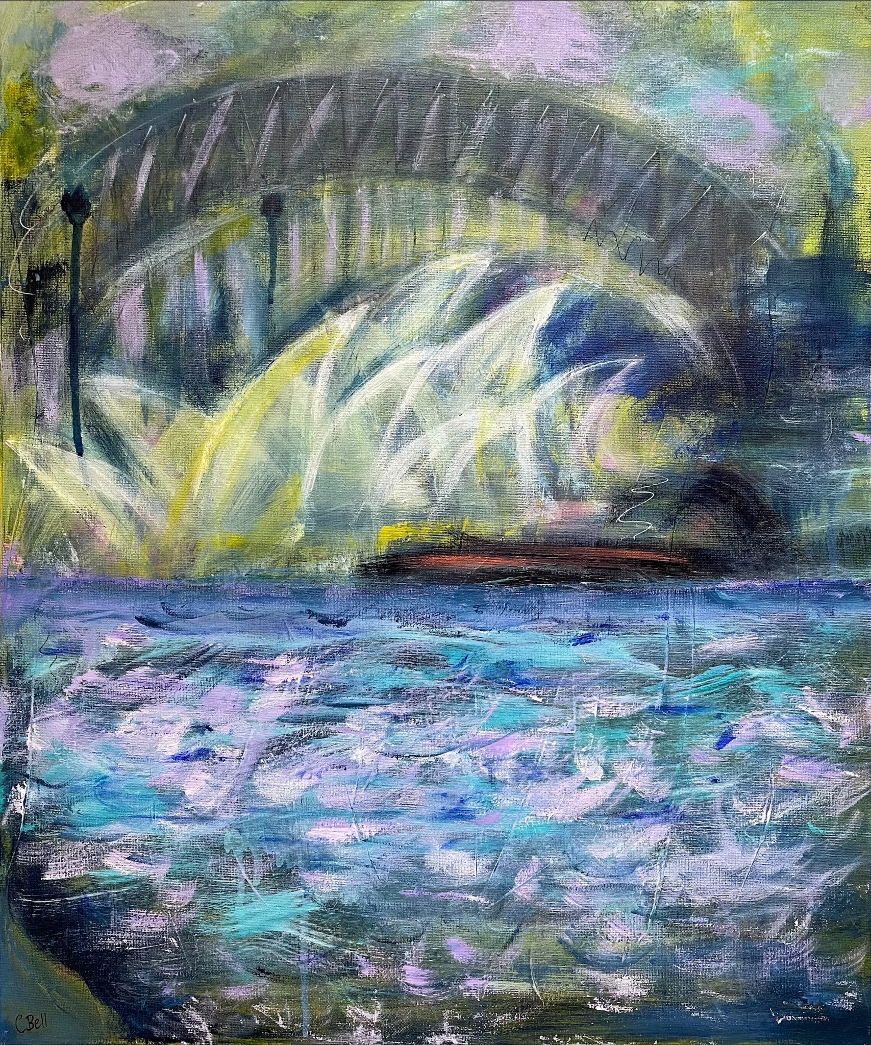 I enjoy shifting between abstraction to figuration and back again. This is a semi-abstract interpretation of the Sydney Harbour bridge, the Sydney Opera House, and the Harbour.