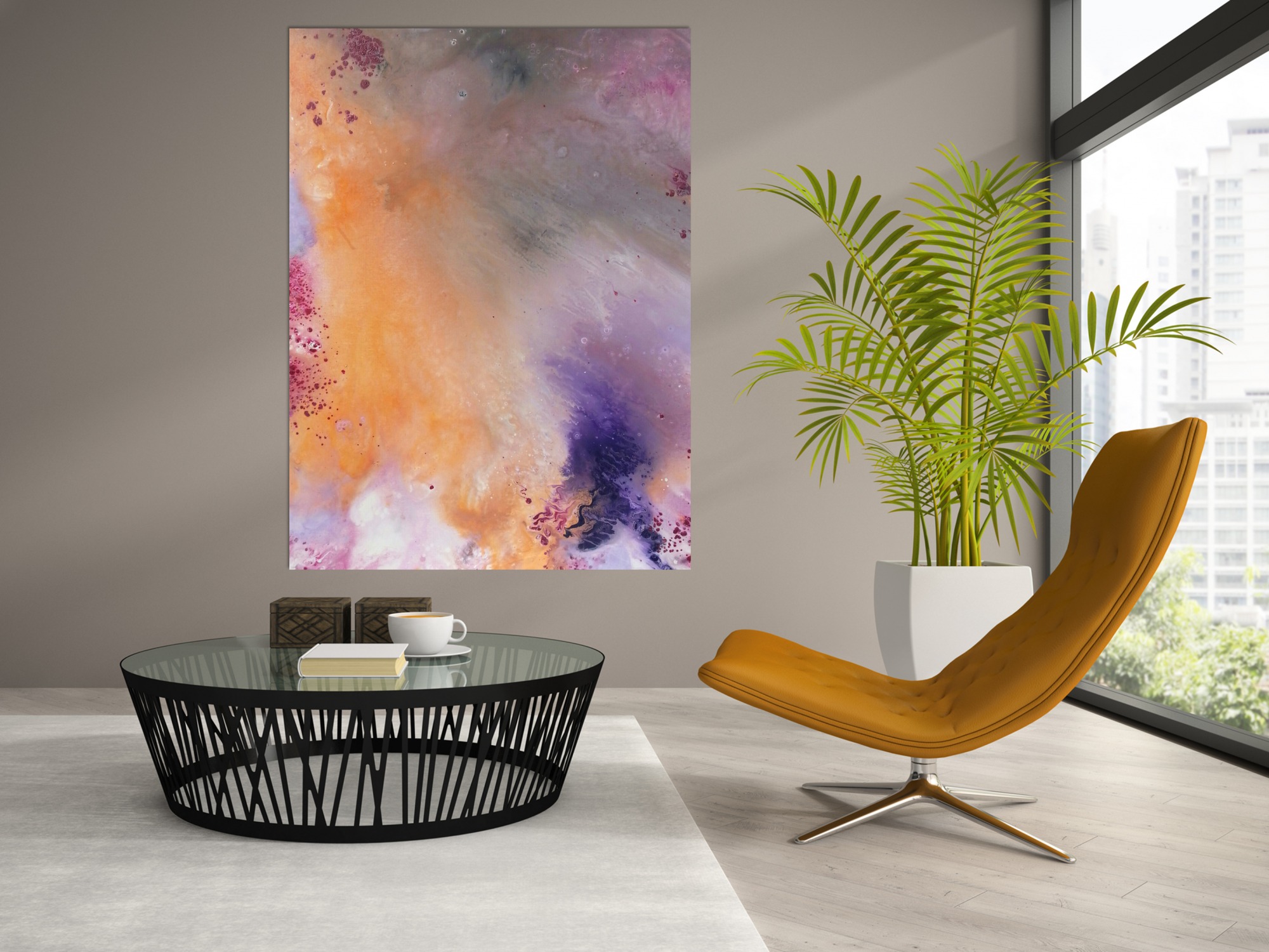 This original artwork on canvas is finished with a satin protective coat and has white edges.