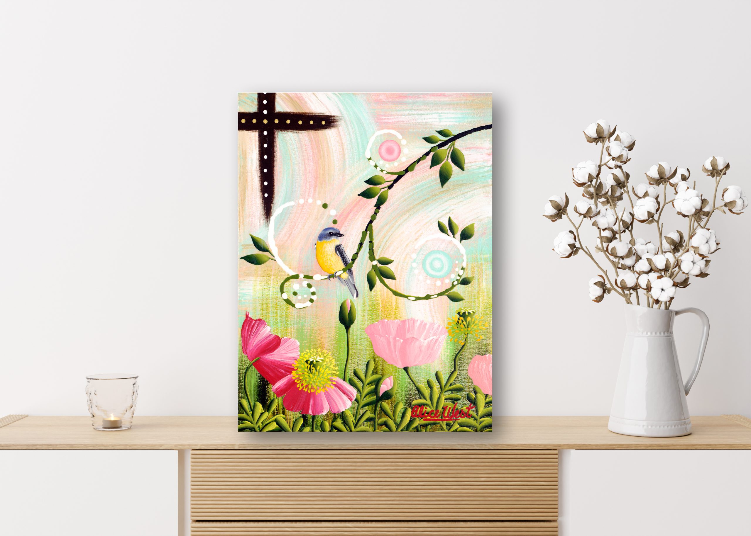 Please note: Paintings should not be hung in direct sunlight, near heat or in damp areas.