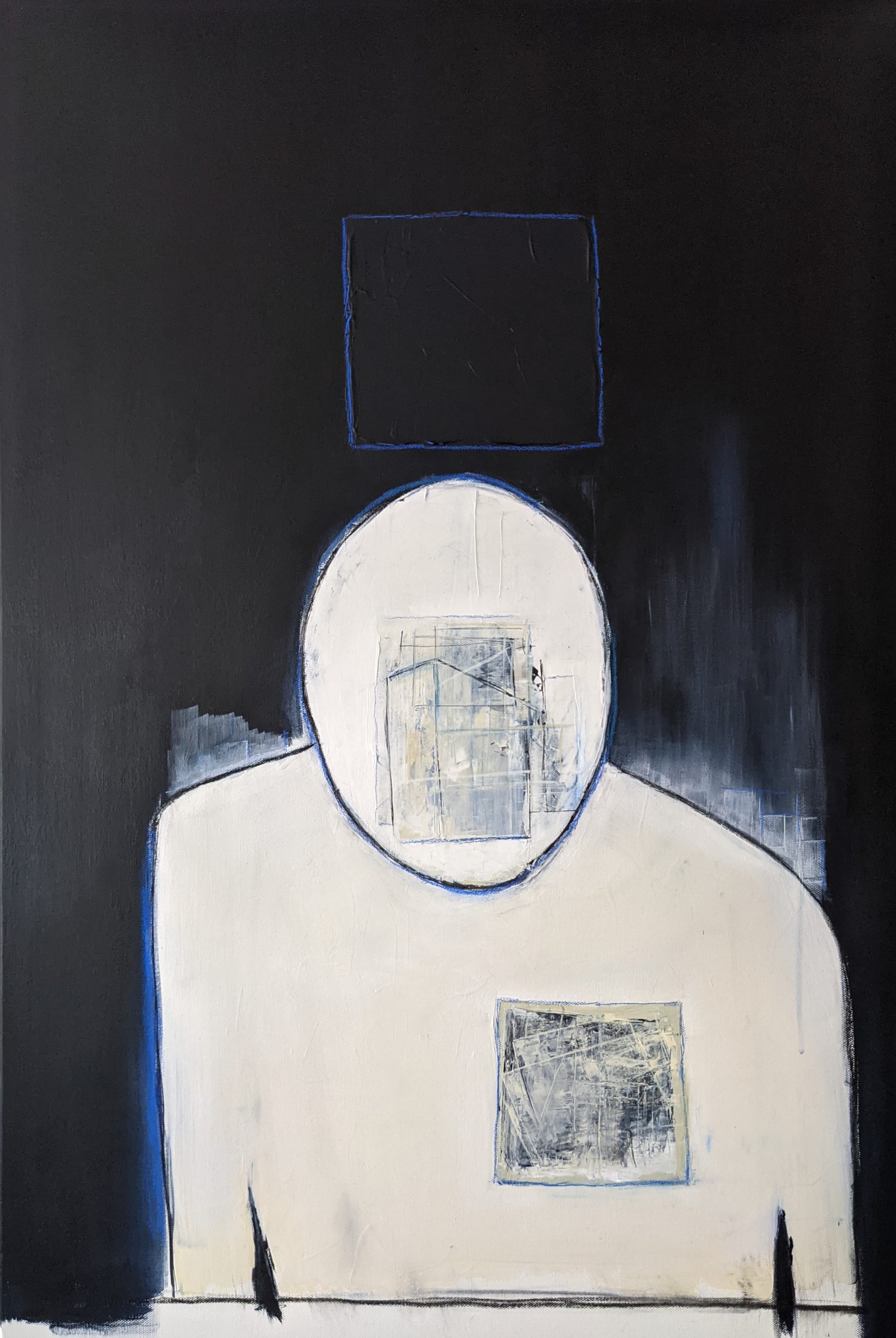 Mixed media – acrylic paint pen charcoal and pastel on canvas