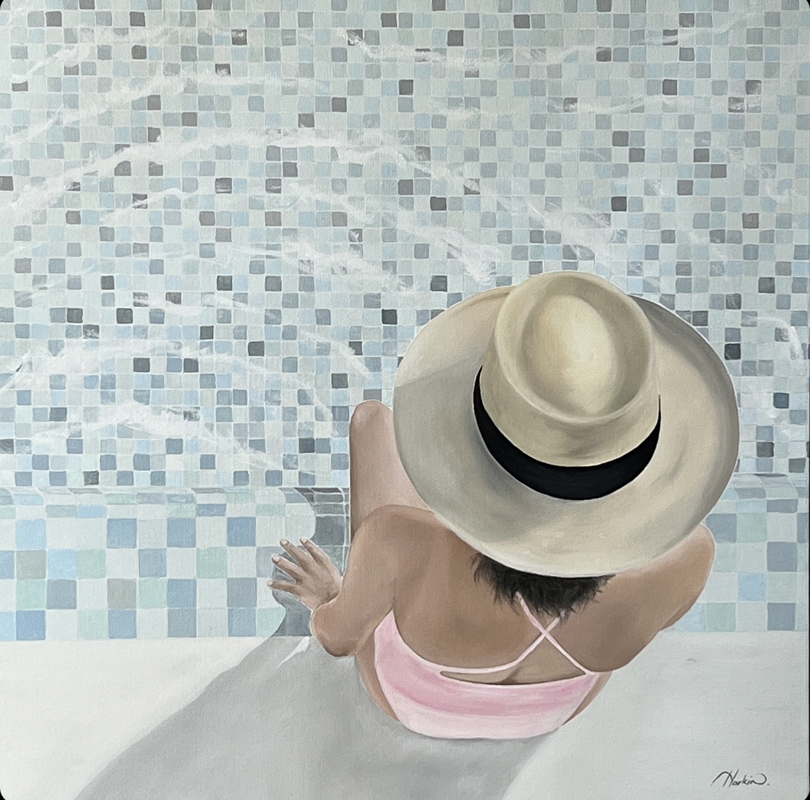 Tan Lines by Kate Karin – This is an oil on canvas, and depicts a girl in a sun hat and pink bathers on the edge of a glorious blue pool. She was influenced by Summer in Australia and all the delights that come with beaching, swimming and lounging in the pool. I adore the light on her hat and the colours are just superb