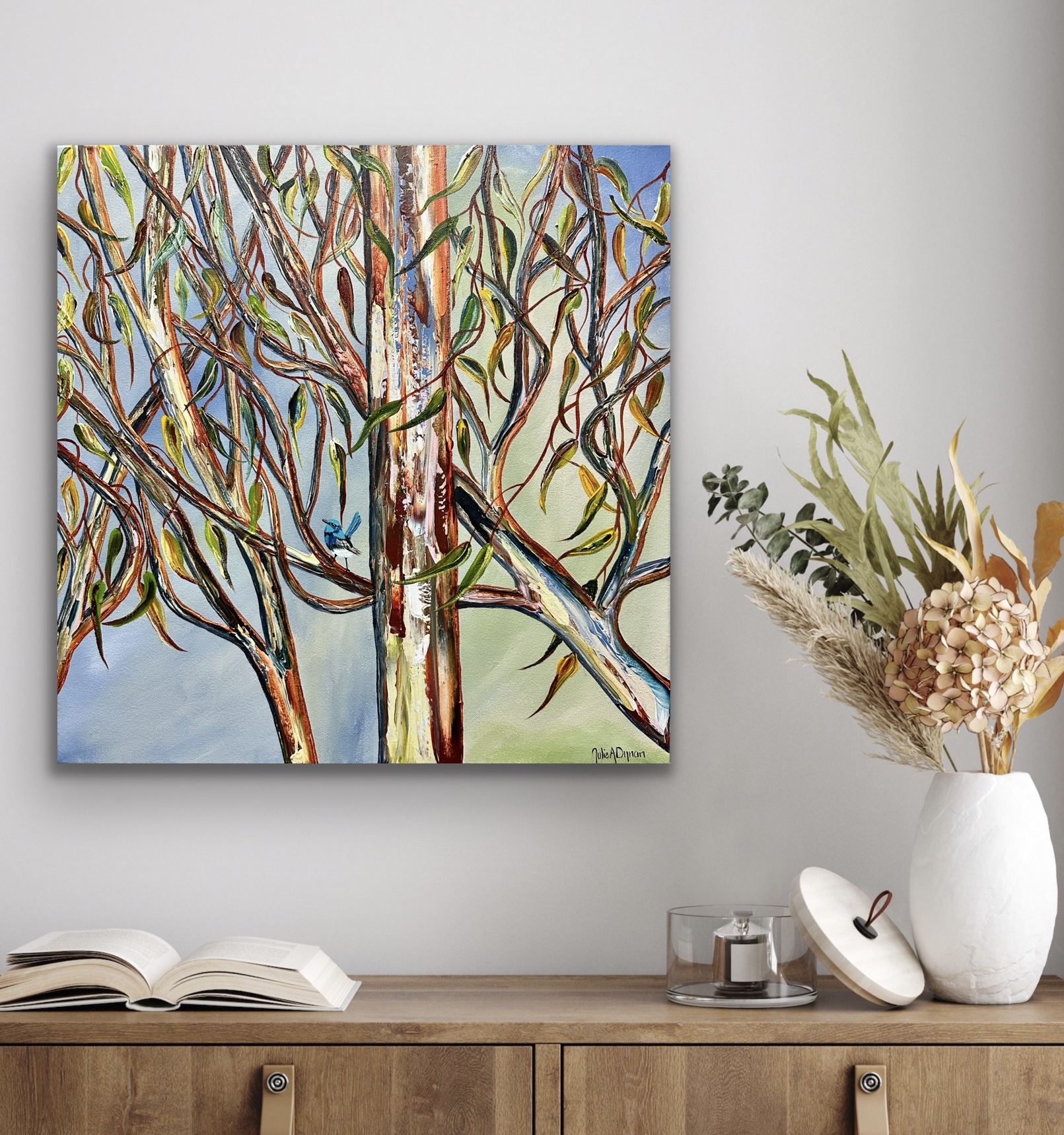 Flannel Flowers and Blue Wren – Vases of Happiness Series