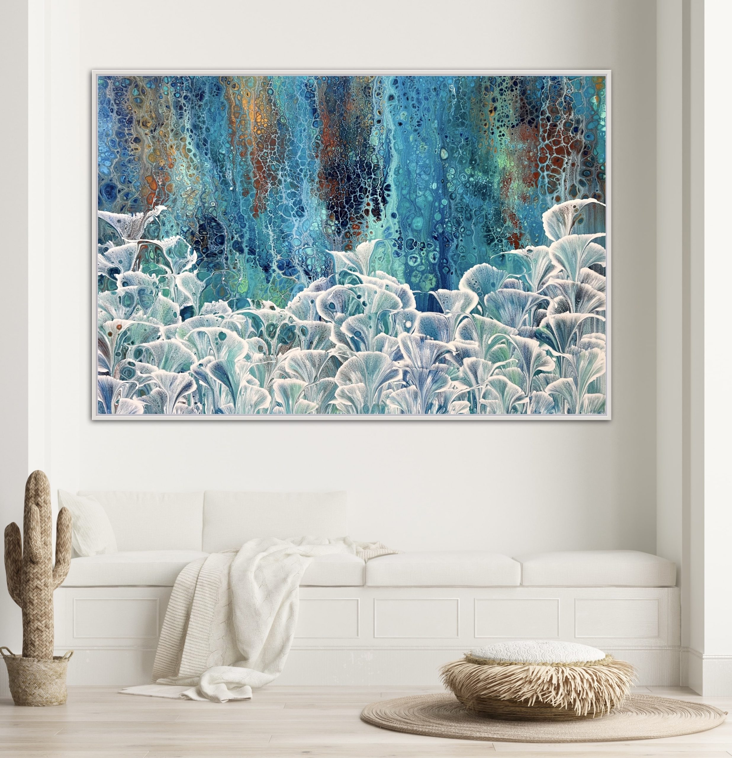 This artwork is available now and is ready to hang. It will leave my studio within 3 business days. The painting continues down the sides of the canvas so there is no need to frame. The greatest of care is taken with all my artwork and it will be carefully wrapped in bubble wrap and sturdy cardboard. Packaging and delivery within Australia are included in the artwork price.