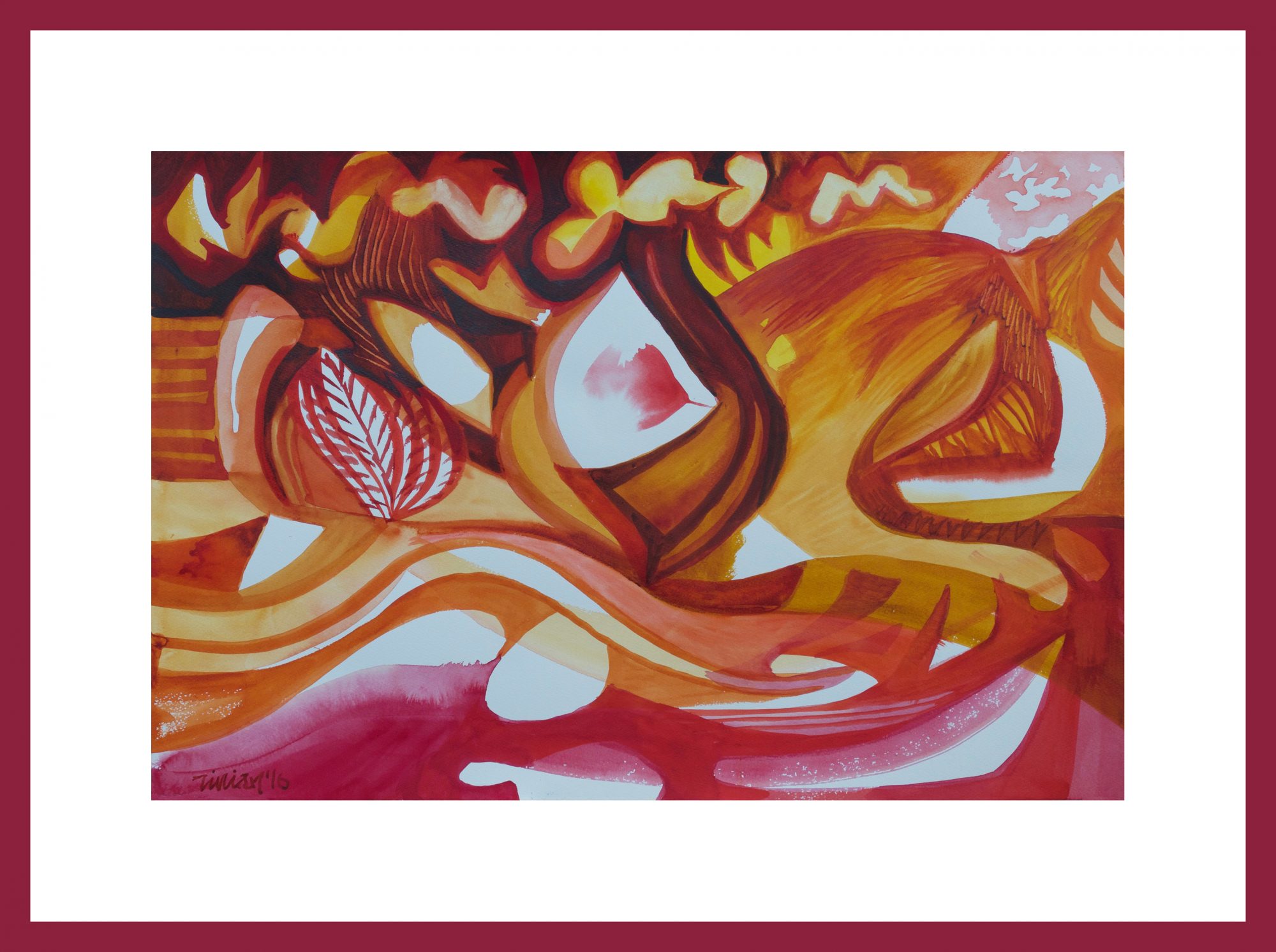 Abstract unfoldings of the curled self. Within these flames of gold are gentle remedies for physical, mental and spiritual tiredness and inertia.The internal flame that motivates us is called Tapas in yoga philosophy. Tapas is a Sanskrit word that literally means “fire; to burn”. It is the inner motivation, discipline and determination that fires up our goals and dreams. The universe expresses itself as spontaneous creative energy. Yoga gets the energy body moving, and the energy body is the source of creativity.