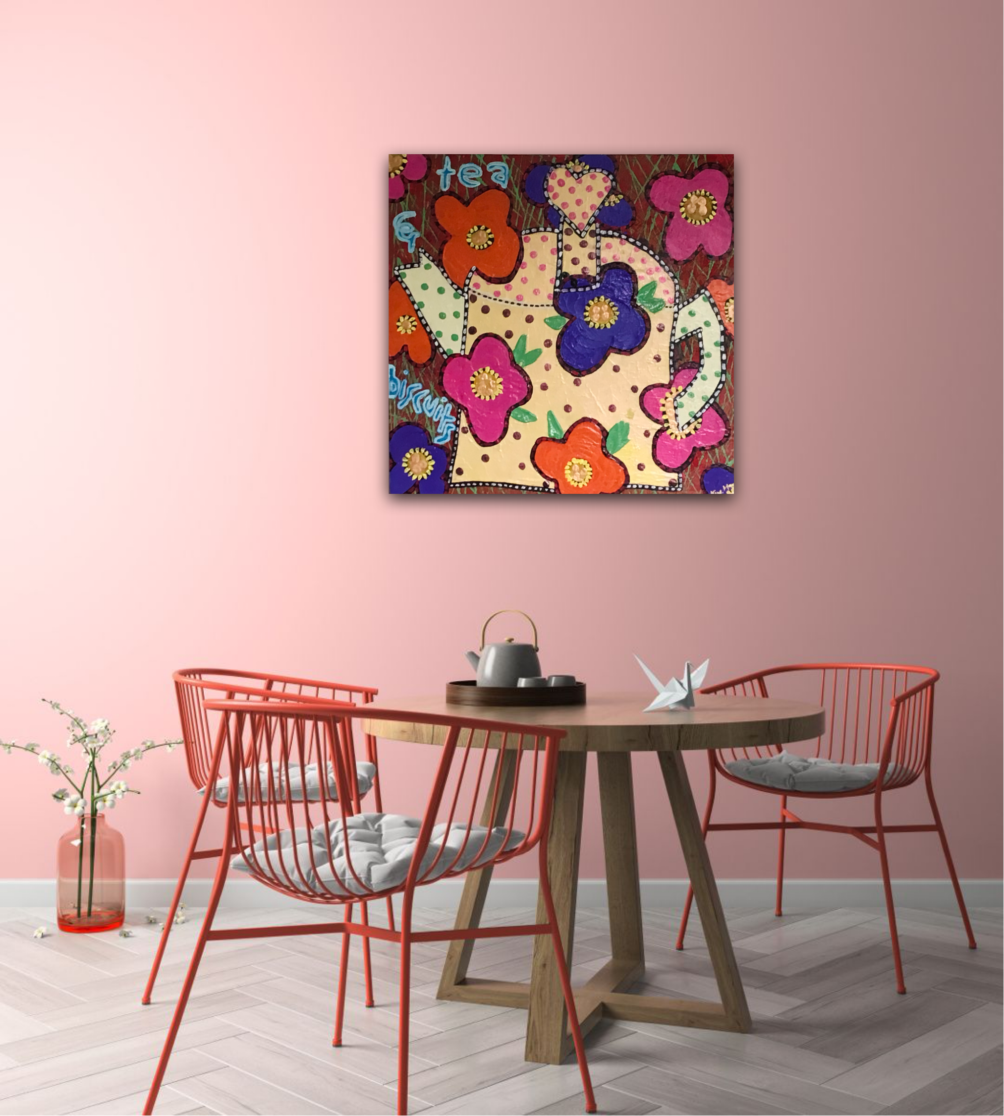 Tea Pot Flower Painting On Canvas