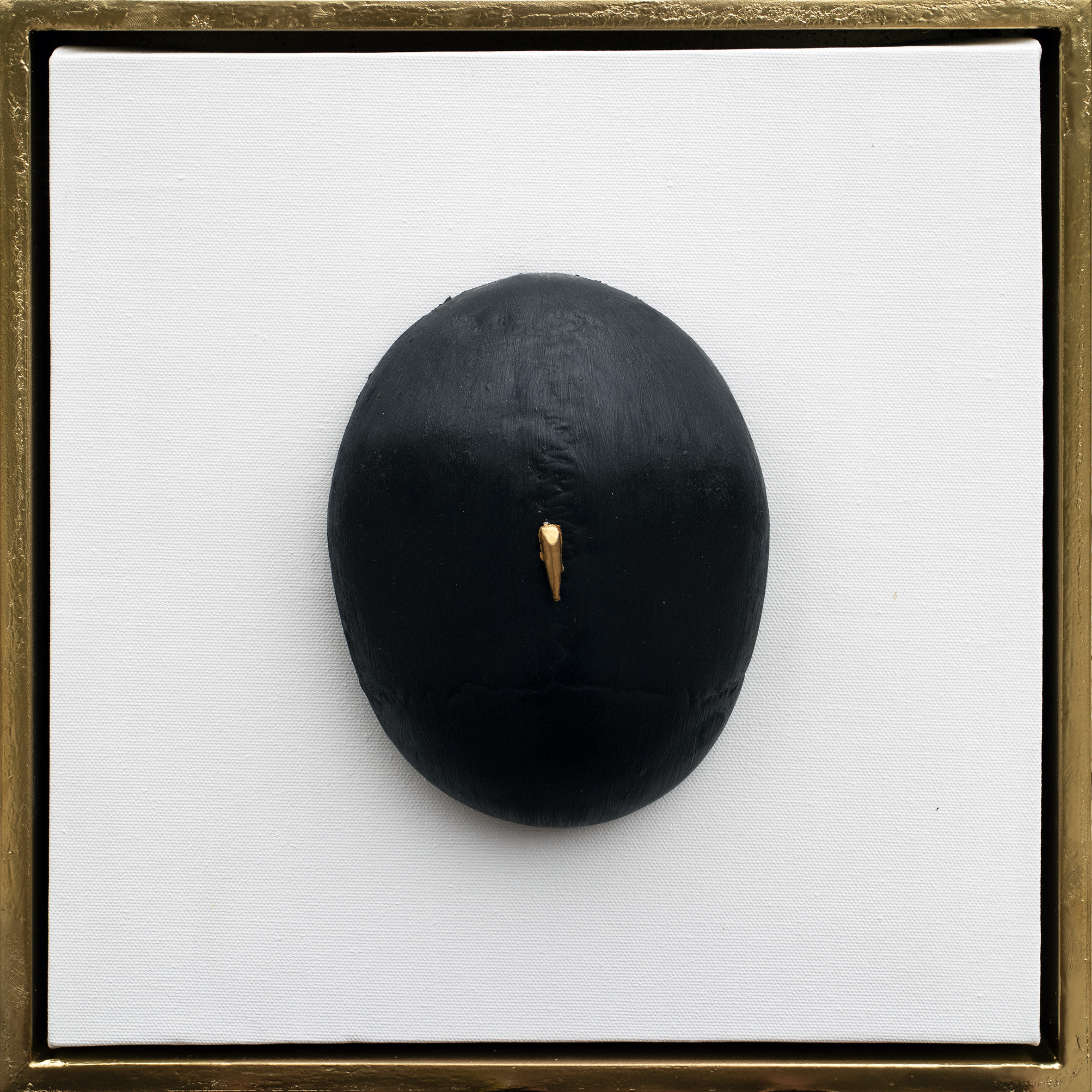 Mixed media – Acrylic, oil stick, spray paint, skull top and collage on canvas