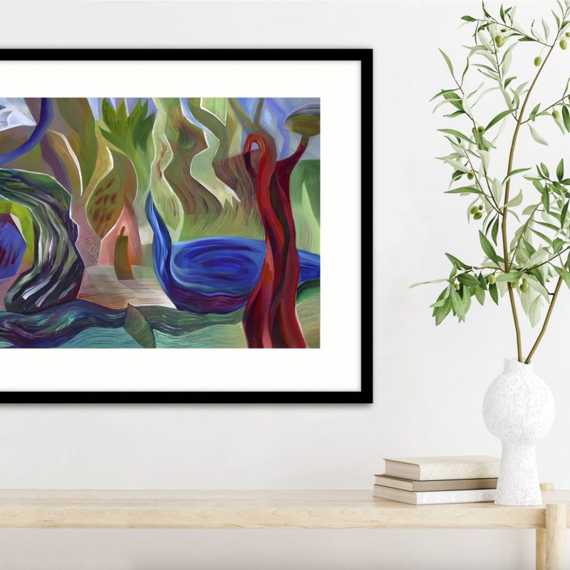 Original artwork using acrylic paints applied with trowel, hands and brush on to stretched canvas