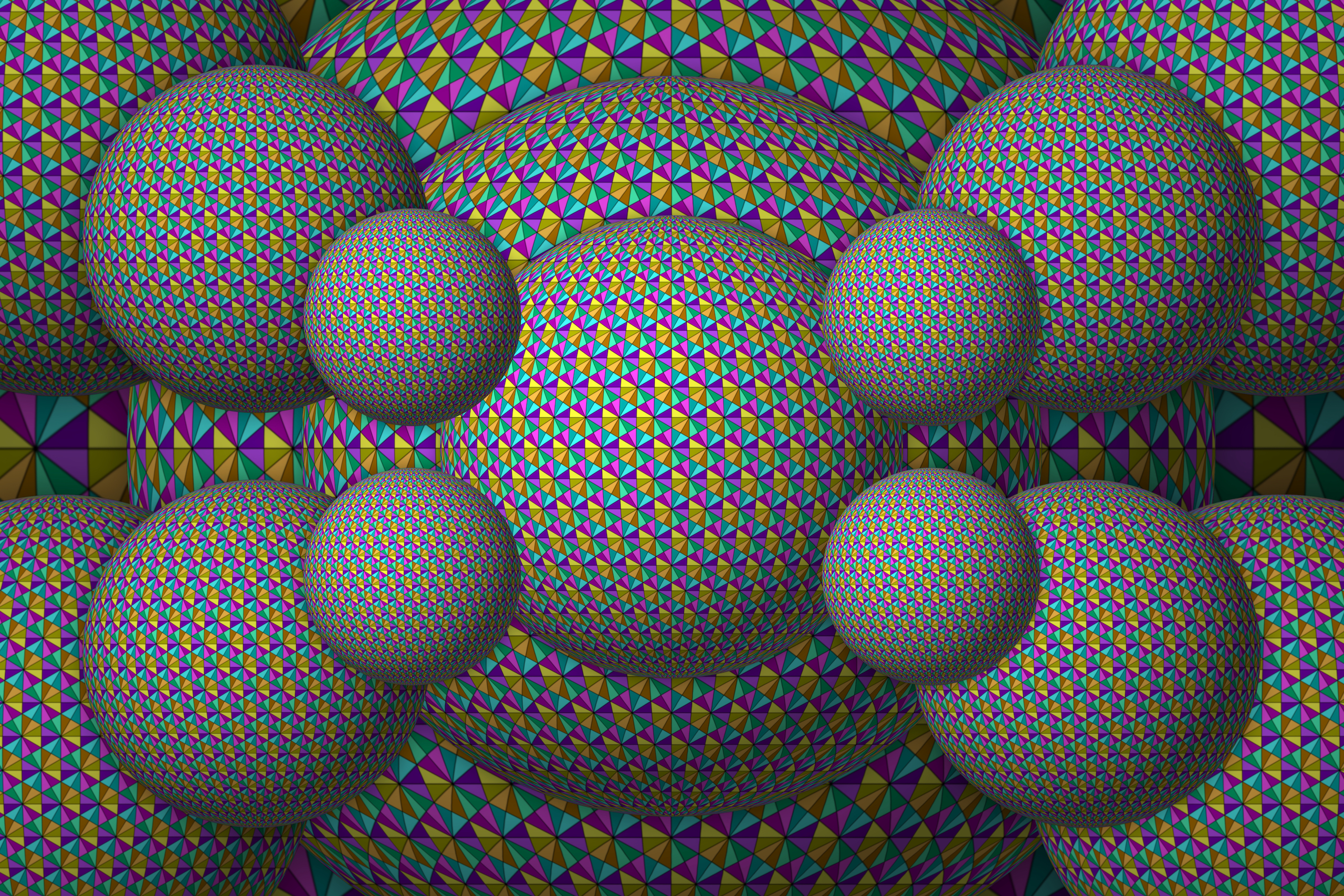 At high 7680×6480 resolution, this is Maths Art of the highest quality. The background sphere layers are actually progressively slightly darker, lending the image more depth. This piece is a celebration of mathematical and geometrical precision, and the joy of patterns and colour.