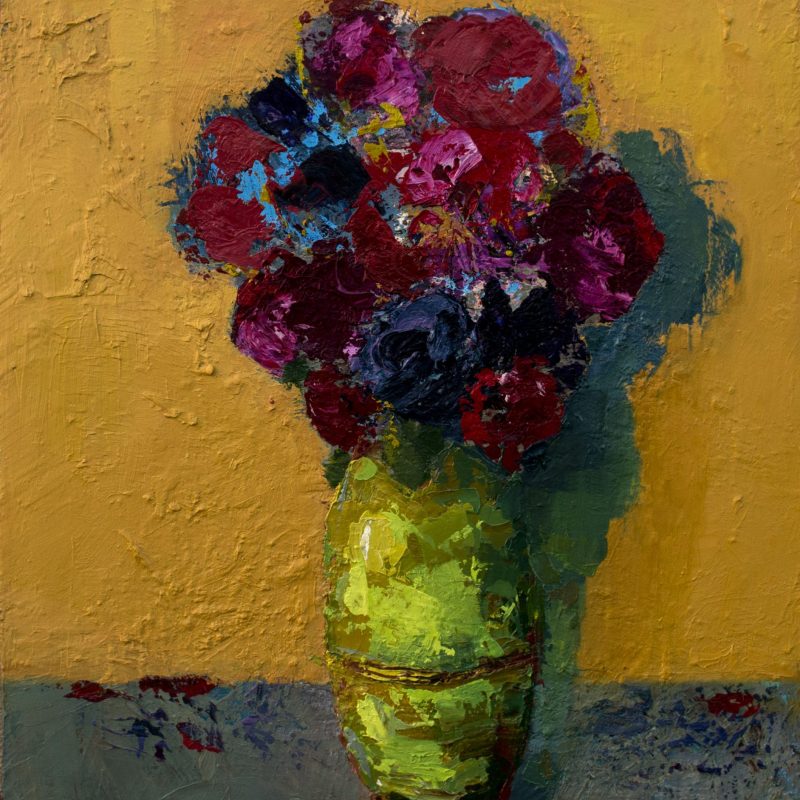 This piece is on stretched canvas and 2 coats of high gloss varnish have also been applied to protect the artwork. The gloss finish really makes the colours pop and gives the work a glassy finish. It has a wire at the back with collaged edges so it is ready for your walls, or you may wish to add a frame directly through Art Lovers during purchase.