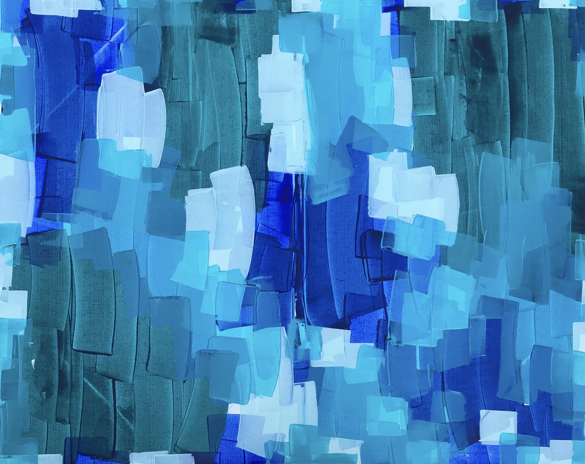 Layers of ocean coloured blues & greens create an almost 3D effect in this beautiful big blue artwork.