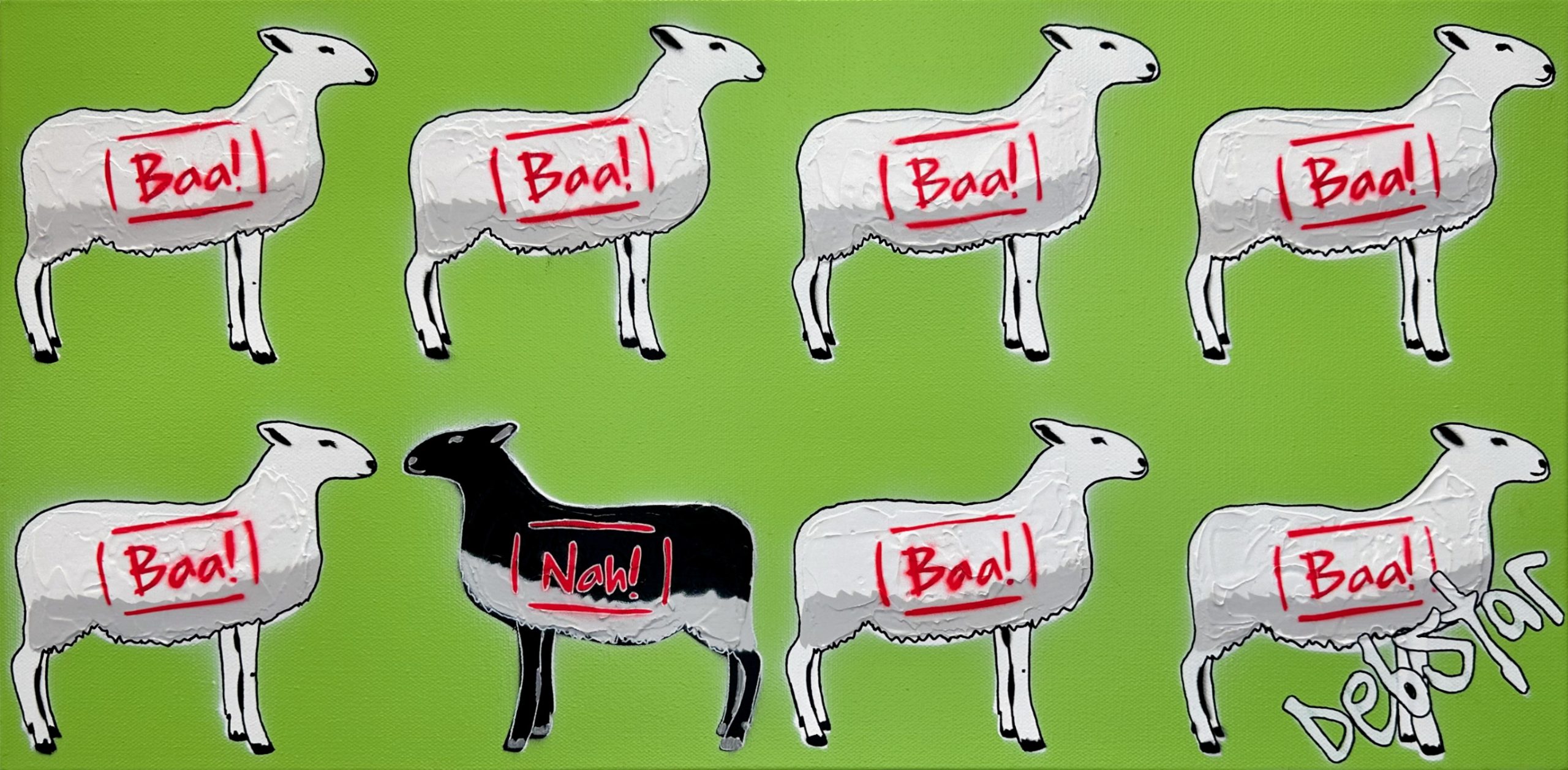 The Black Sheep – Green 2 by Deborah Lang – Add a cheeky cute pop of colour to your home… so what side are you on???