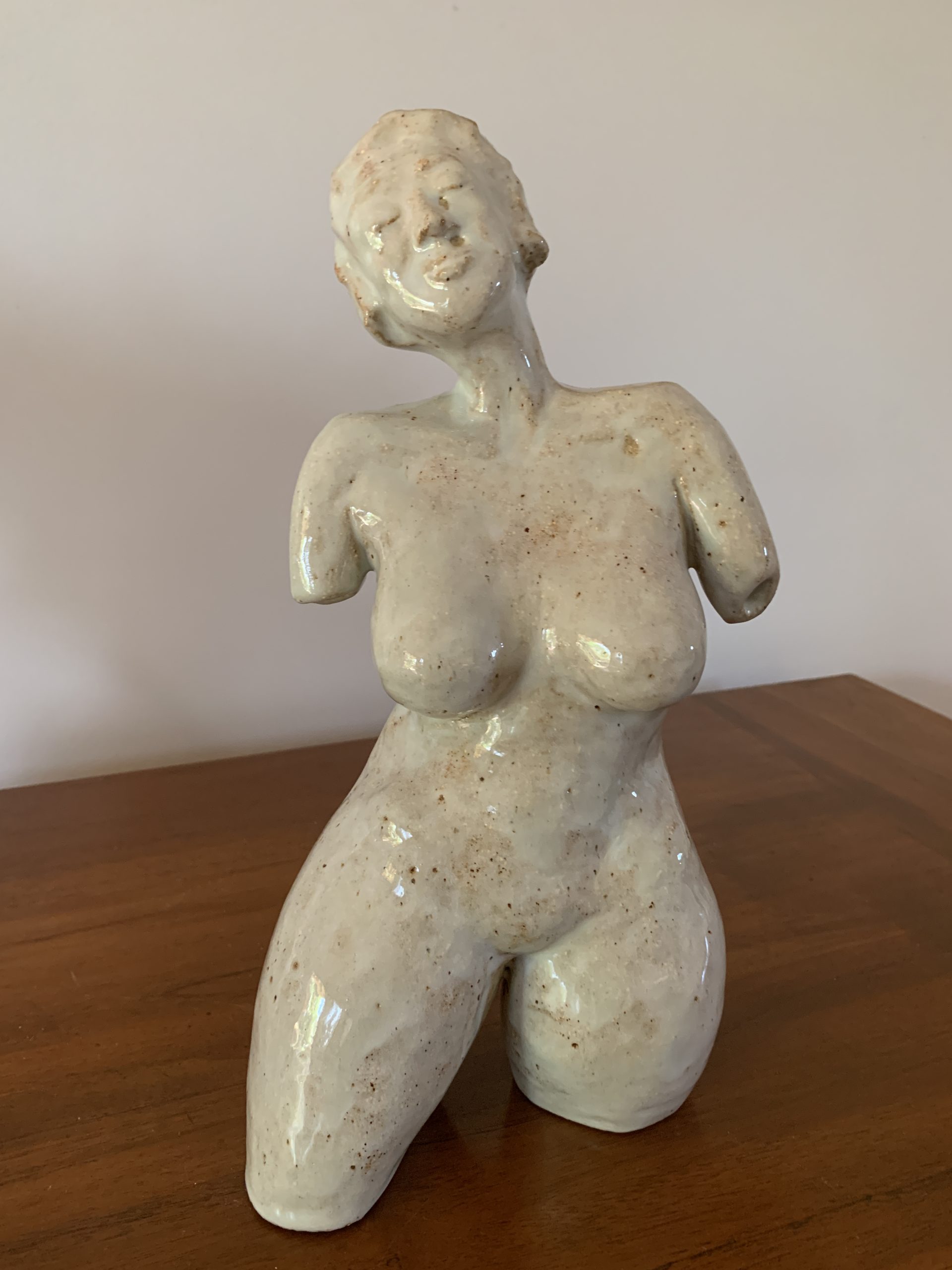 Hand built with white raku clay, bisque fired and glazed in a stone toned finish, display as is or add your own touch with dried flowers.