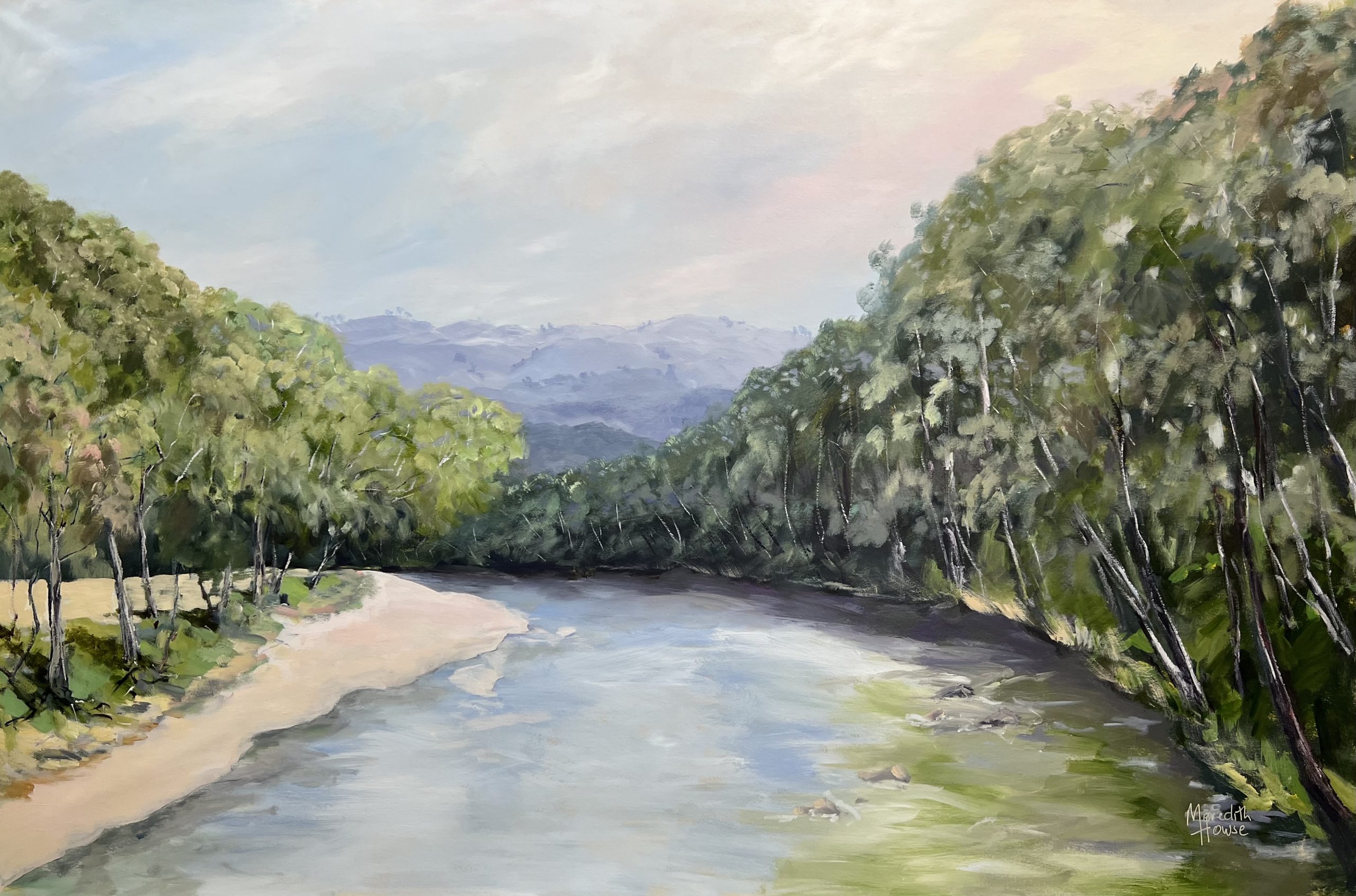 Meredith paints with either acrylic or oil paint on gallery wrapped stretched canvas.