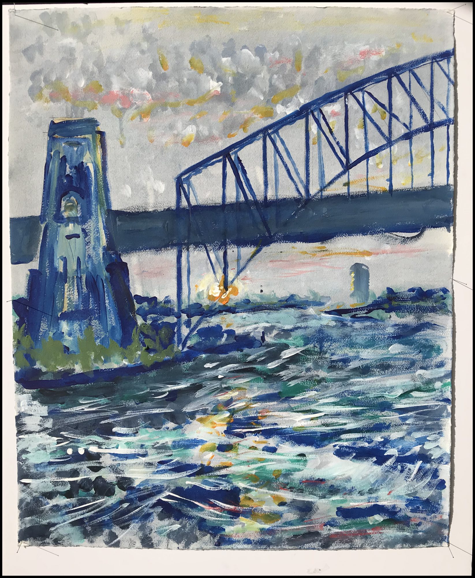 Sydney Harbour Bridge at sunset in Winter. Acrylic on Hahnemuhle Paper. W53.5 x H65.5.