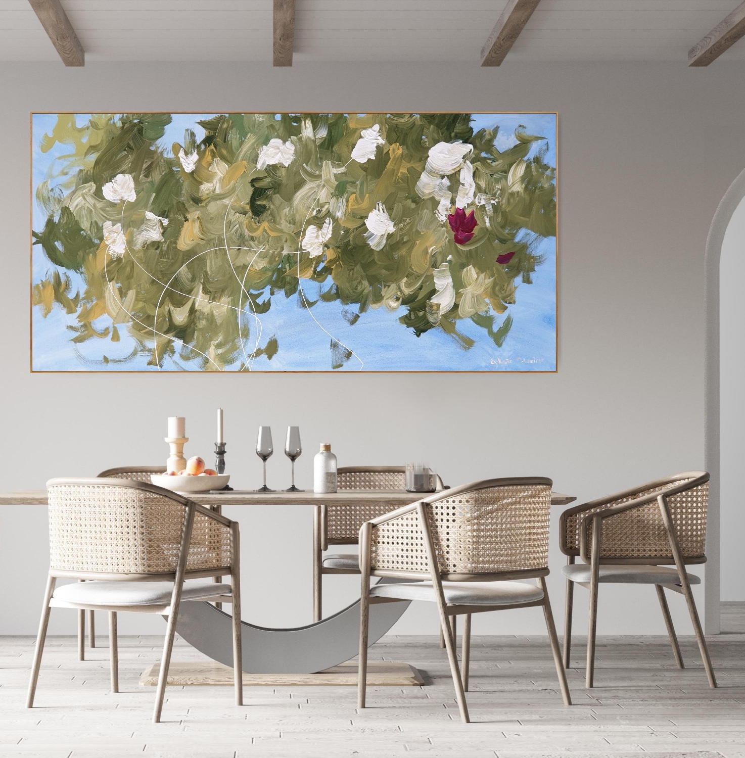 I view painting as sheer passion and feeling. Through my process I don’t seek to depict a set idea or subject, but instead I let scenes and dynamic movement emerge organically.