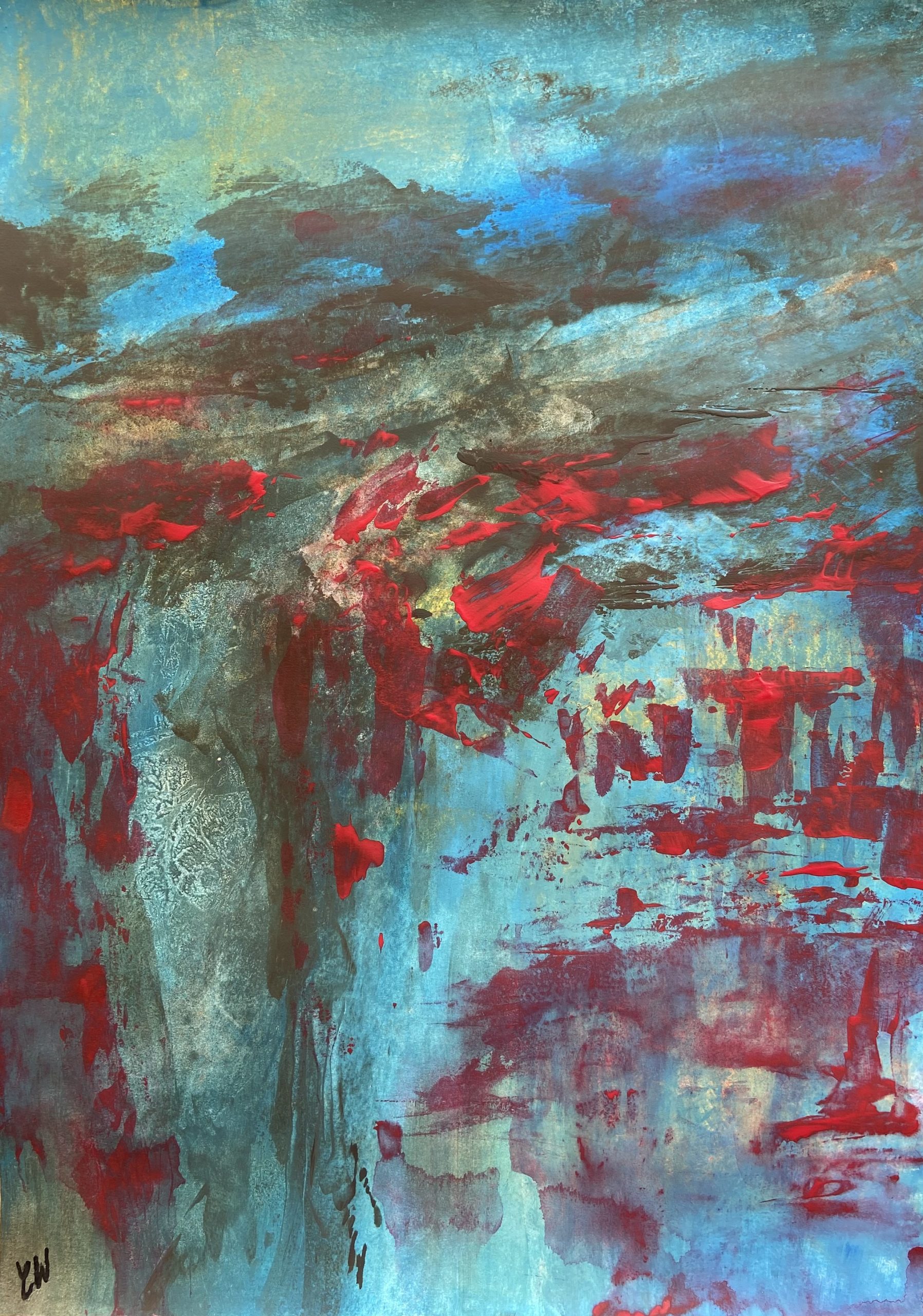 A beautiful abstract landscape painting. 59.4 x 42 cm (A2 size). Acrylic on paper. Frame not included. Requires framing.
