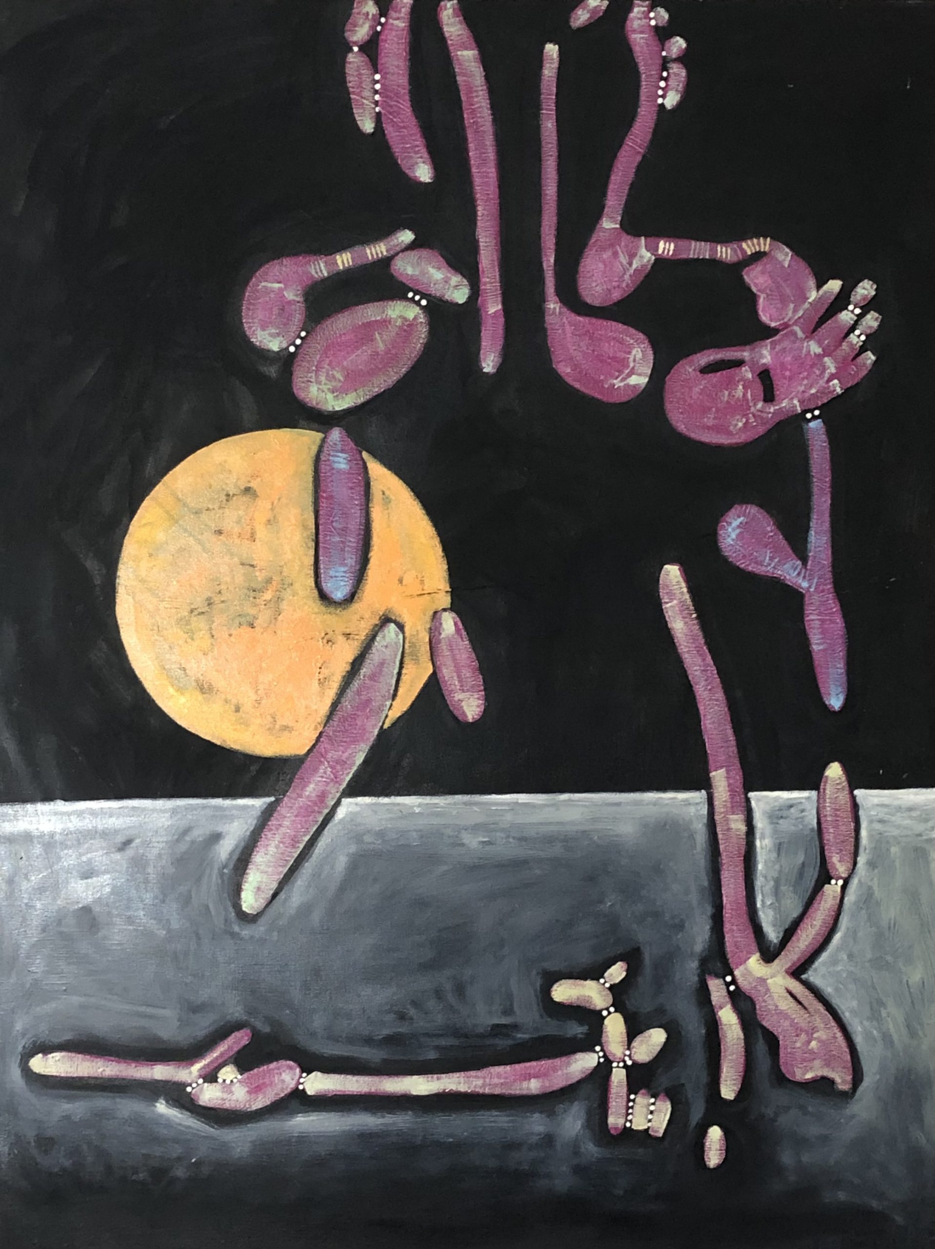 The Earth Spirit is Watching You by Erica Davis. A collaboration with my daughter. Depicts a female earth spirit manifesting over night time landscape.
