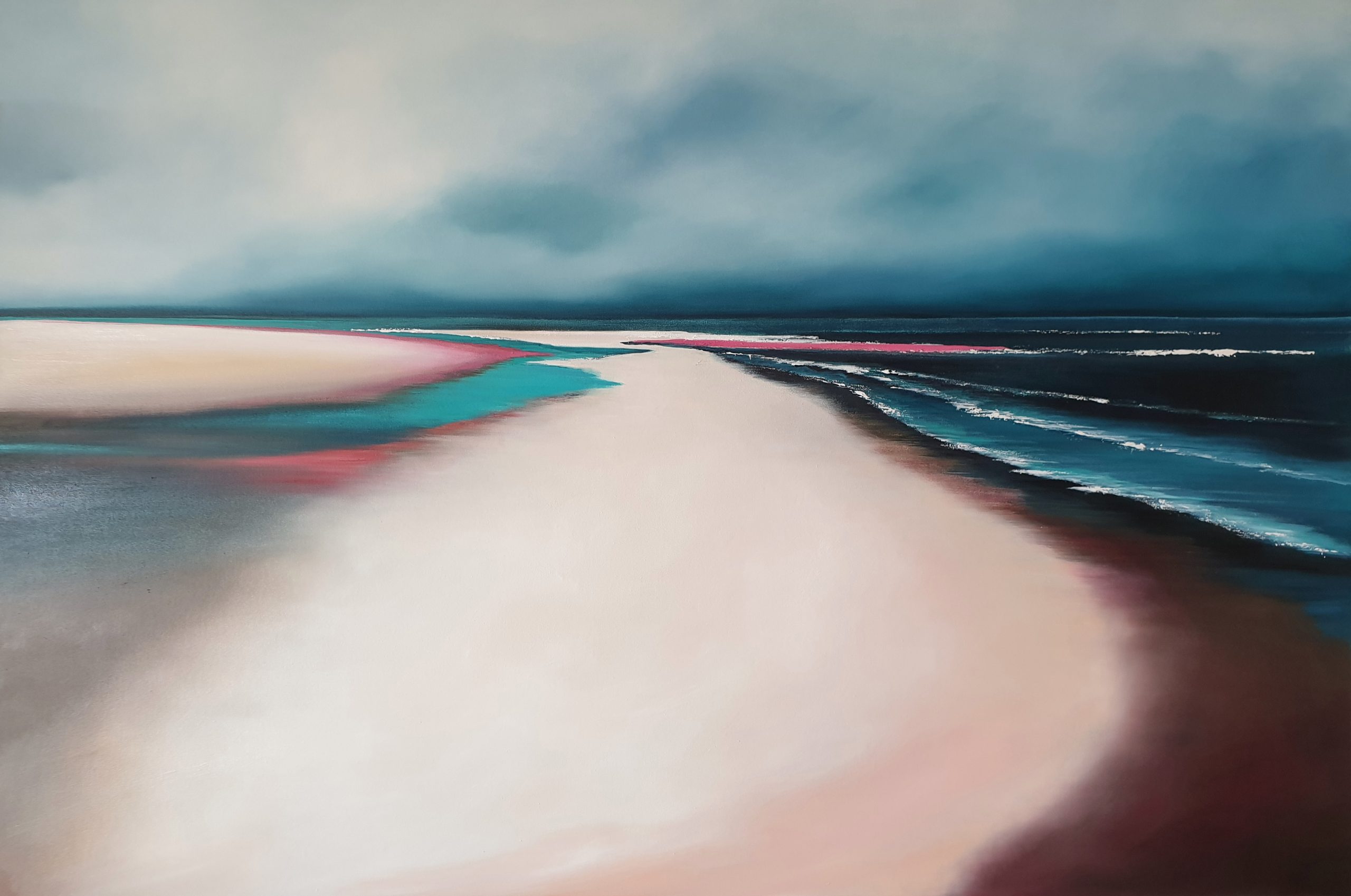 The Ebbing Tide by Lucinda Leveille is a large original oil painting from a new series “Songs Of The Sea” and an extension of exploring the solitary themed paintings.