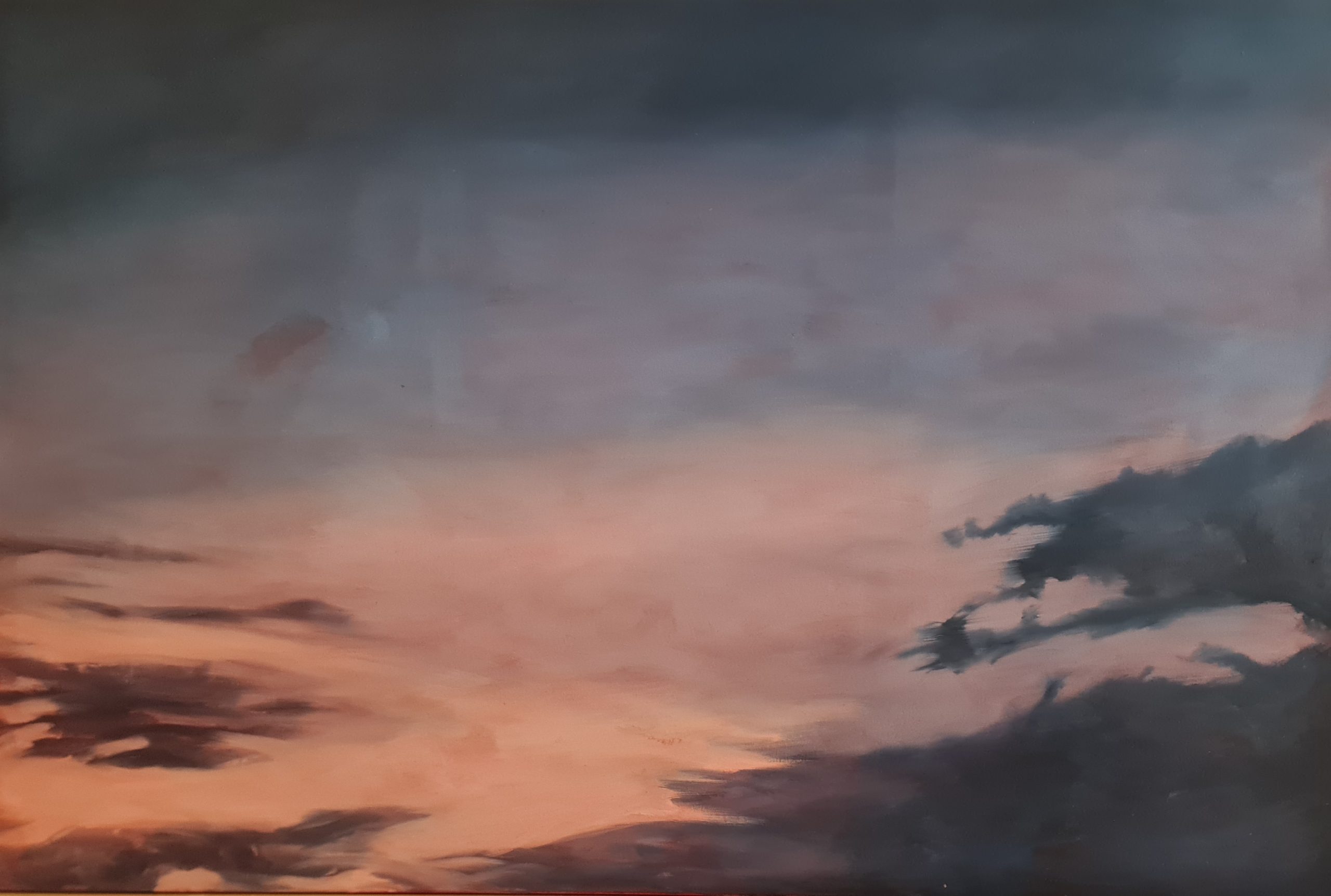 The Edge of Dusk captures the quiet drama of twilight — that transitional sliver of time when the sky trembles between light and darkness. Echoing the emotional vastness found in the works of Caspar David Friedrich, the scene is both meditative and monumental, evoking a sense of the sublime in nature. Soft forms and a blurred horizon pay homage to Gerhard Richter’s dreamlike landscapes, while the darker strokes and heavy clouds hint at the raw emotional layering reminiscent of Anselm Kiefer. There’s a cinematic tension in the composition — a still from a fading reel — where the sky becomes both subject and story. Through abstract realism and emotive color, the work invites viewers into a space of introspection and suspended time..