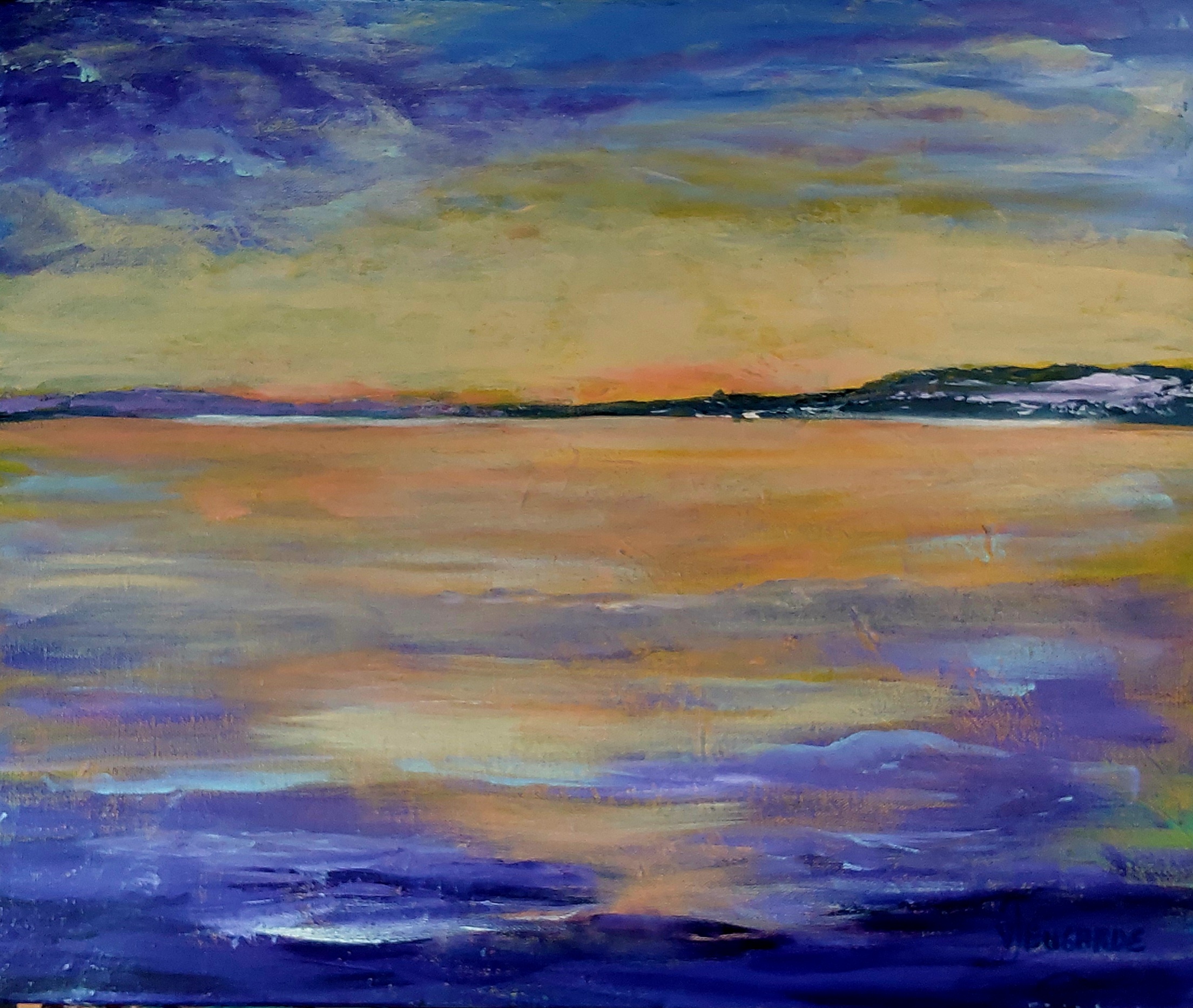 This abstract seascape is sealed and the sides are painted black to compliment the painting.