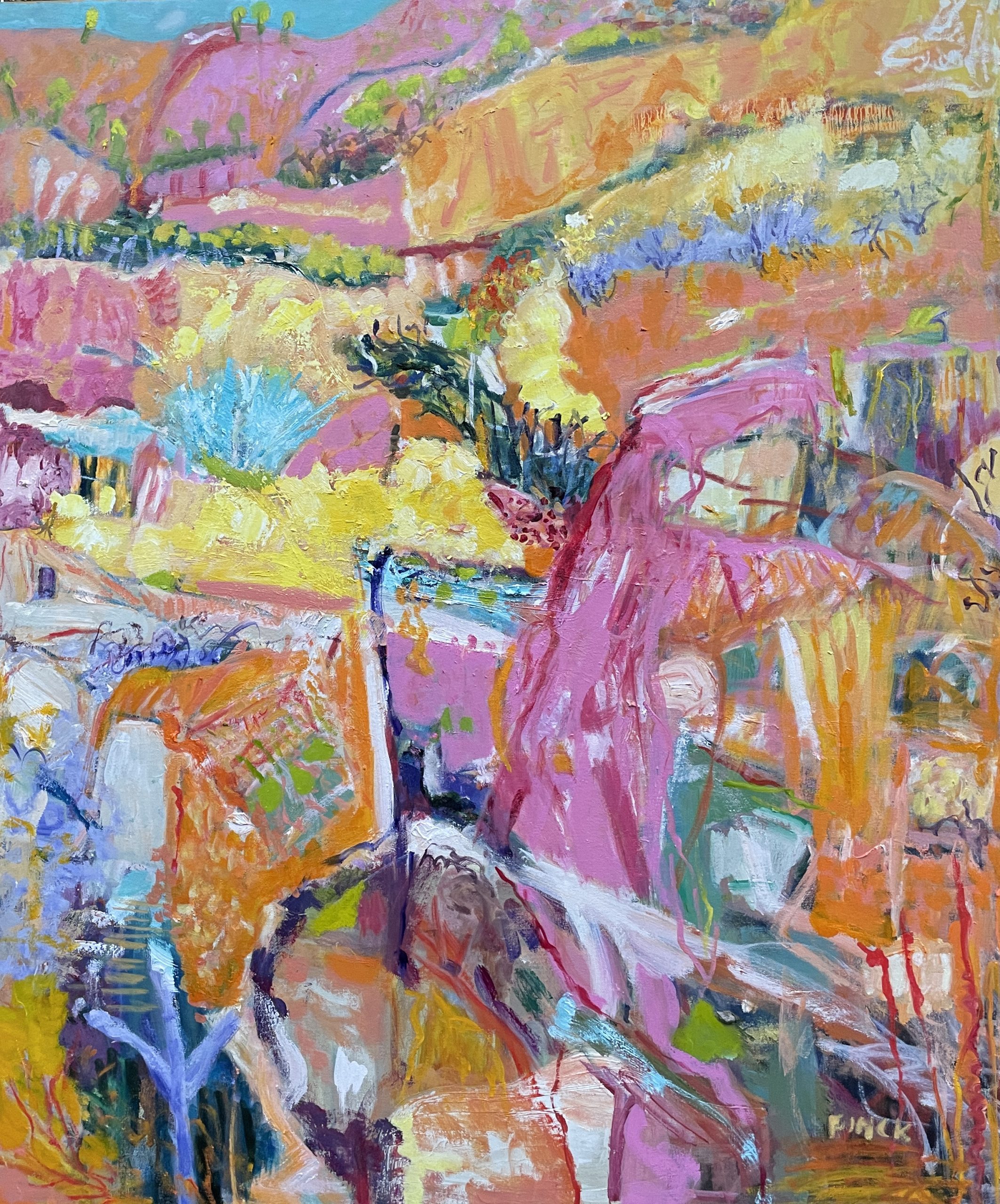 Oil abstract, expressinist landscape painting on canvas.