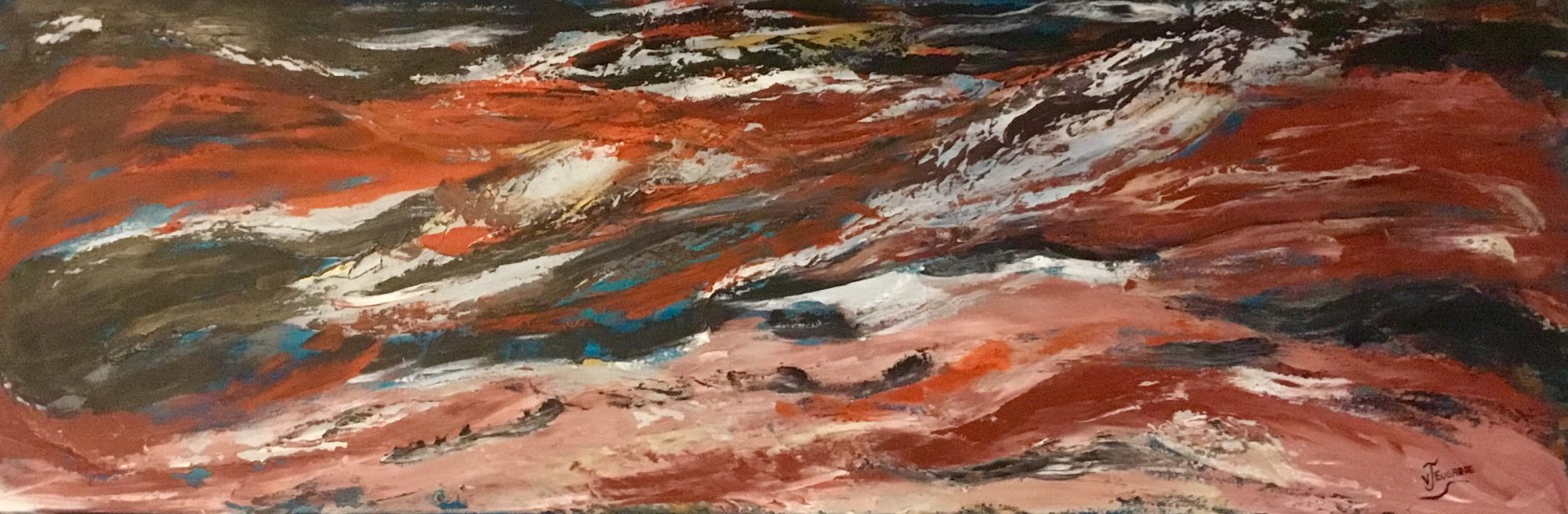 I tend to love warm colours and when the weather gets cold in Queensland I like to paint the outback of Australia with its vibrant red dirt roads and terrain of many different hues, this is a beautiful country and I love to get my travels by painting a picture on canvas that is completely out of my imagination.