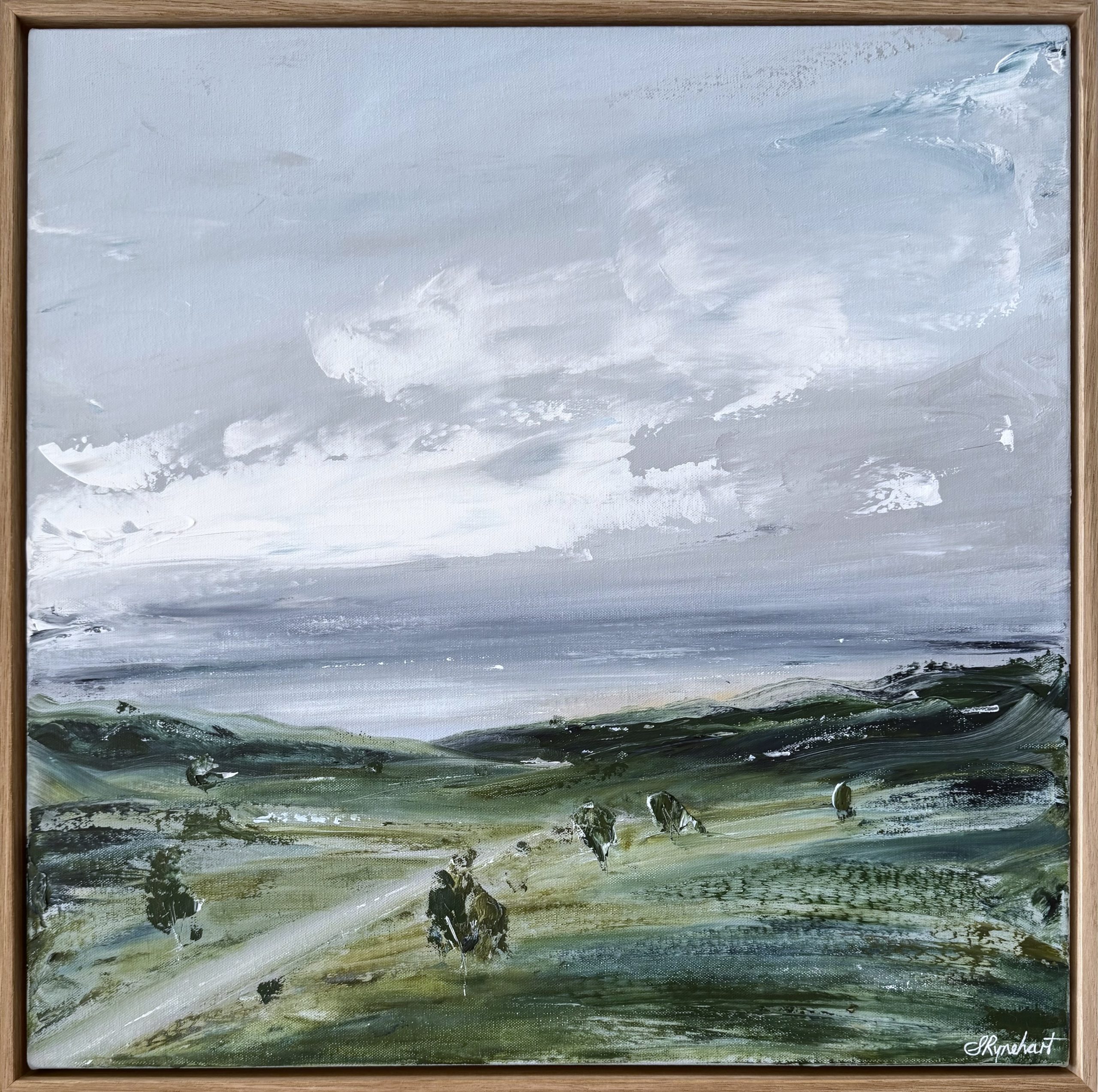 Created with palette knives on 12 oz stretched cotton canvas, this is framed in a solid Tas Oak timber frame and satin varnished. It will come with a COA with the above artist statement written on the back.