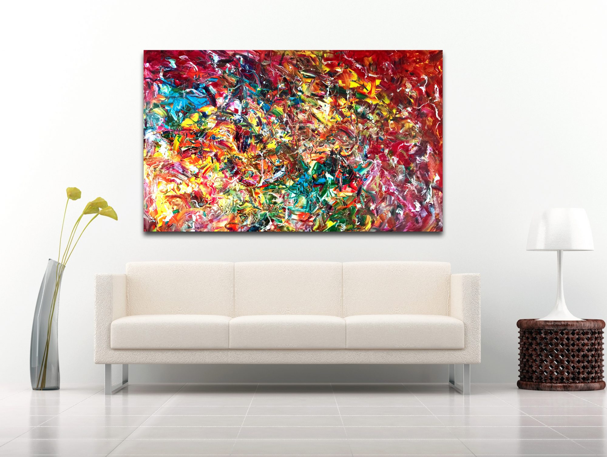 This work was inspired by the feeling that there is always a way to achieve something if someone is determined. This idea produces a positive feeling of optimism. Painted in the style of abstract expressionism.