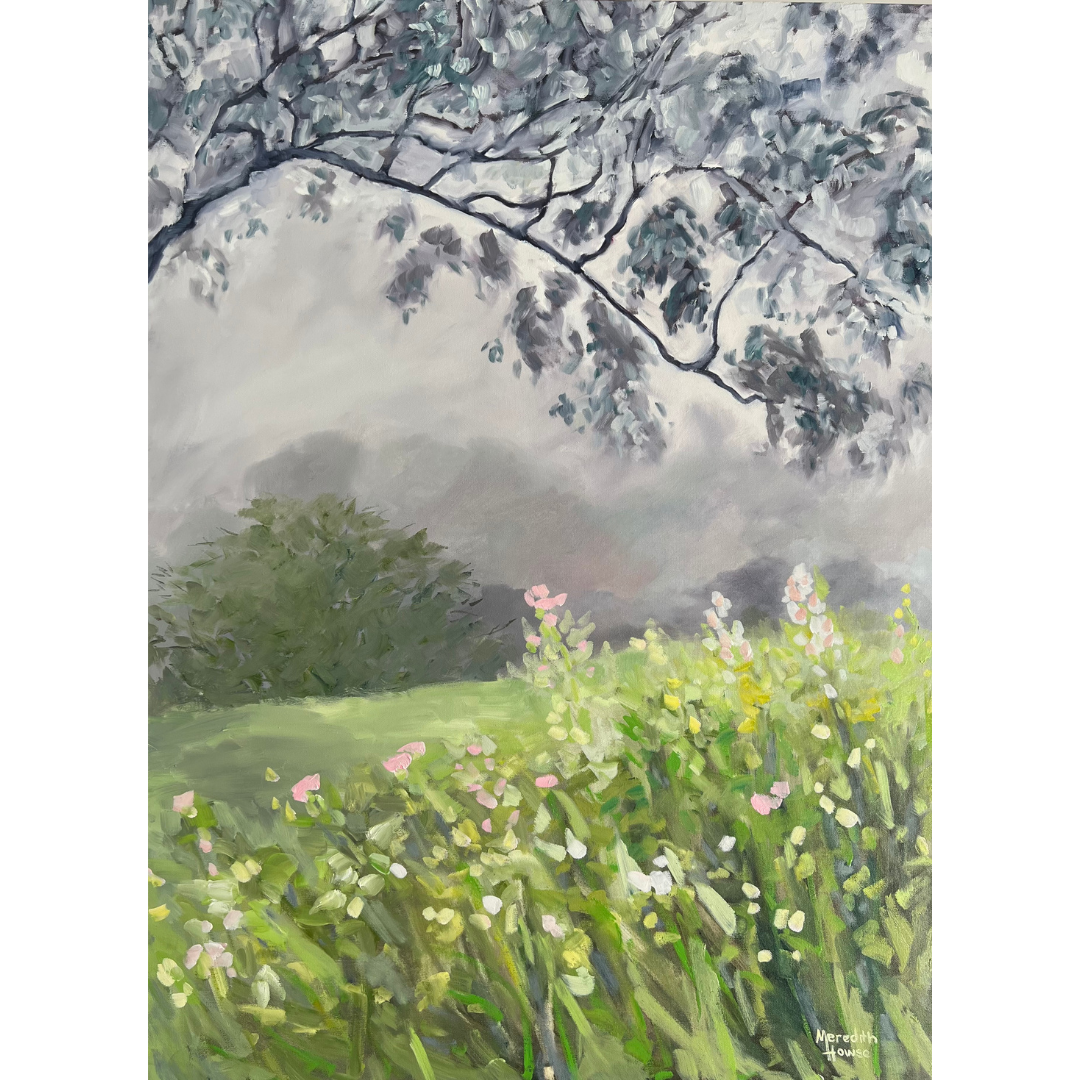 The Field of Many by Meredith Howse is a piece of impressionistic artwork that captures the essence of a early morning spring landscape. The artists use of dappled light, creates a captivating interplay of shadows and illumination throughout the scene.